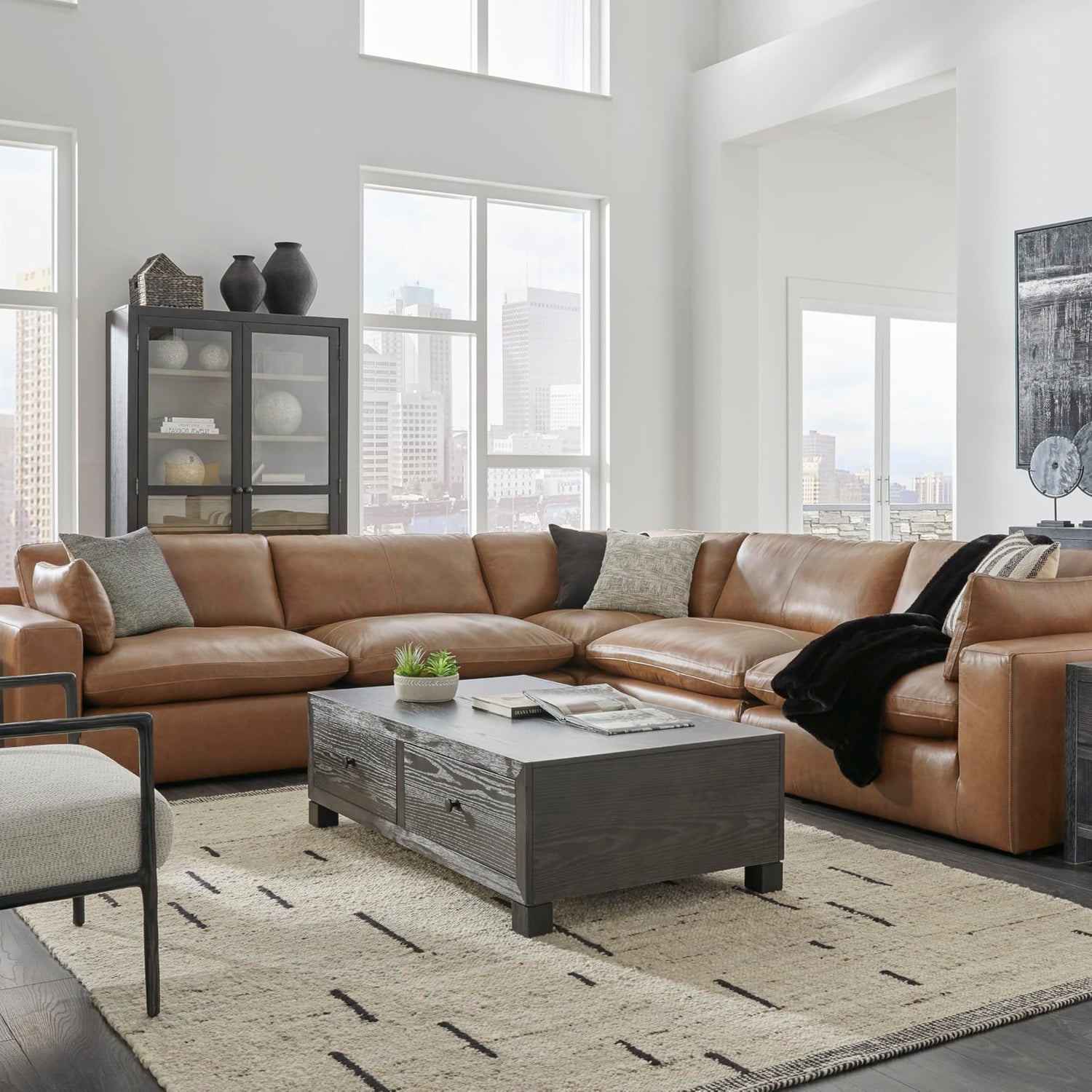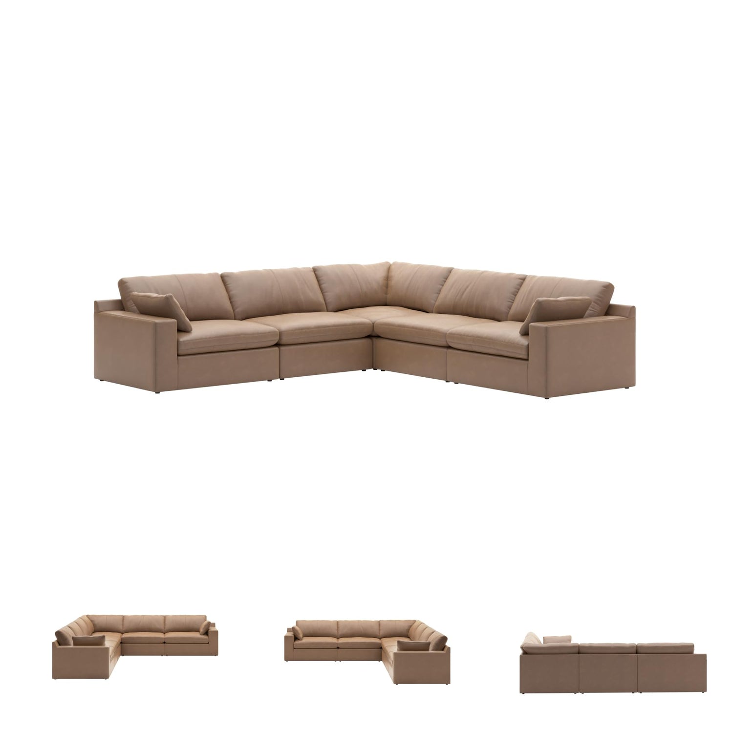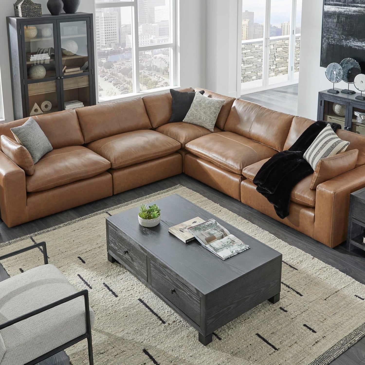 - 5-PIECE SECTIONAL: Catering to your contemporary lifestyle, this sectional is a handsome blend of masculine & feminine sensibilities. Feather-fiber cushions soften the look. Combination leather & faux leather elevates the affordable luxury