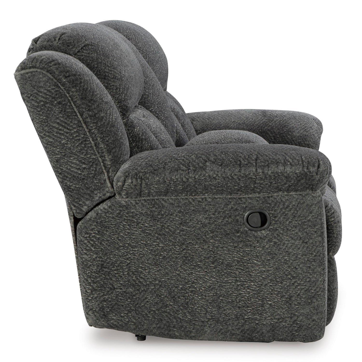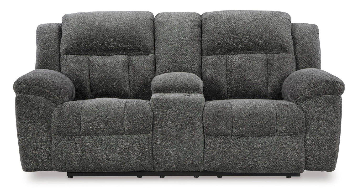Details: With its large-scale design, this extra-spacious reclining loveseat with console is a masterclass in accessible style. Plush, ultra-soft upholstery keeps everyone cozy as you lounge with family or guests. In a neutral hue, it seamlessly suits different aesthetics as your taste changes. Time to relax? The loveseat's pull tab reclining allows you to mellow out with ease.