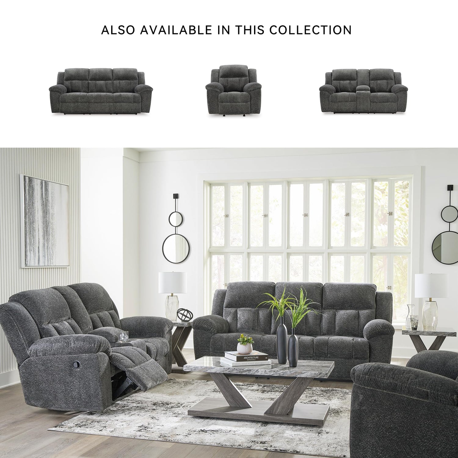 Signature Design by Ashley Frohn Contemporary Manual Reclining Loveseat with Console with Console, Storage and Cup Holders, Gray