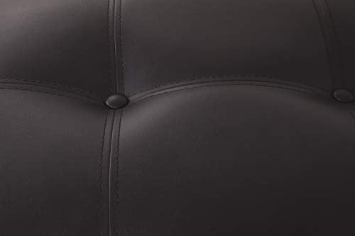 - WOODEN BENCH: Made with wood in a dark brown finish. Cushioned seat is wrapped in vinyl faux leather upholstery