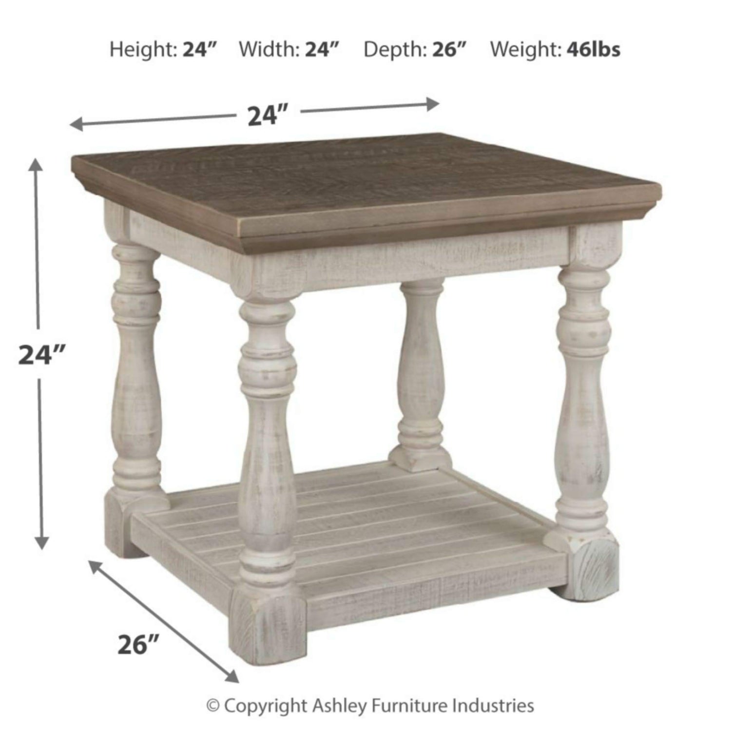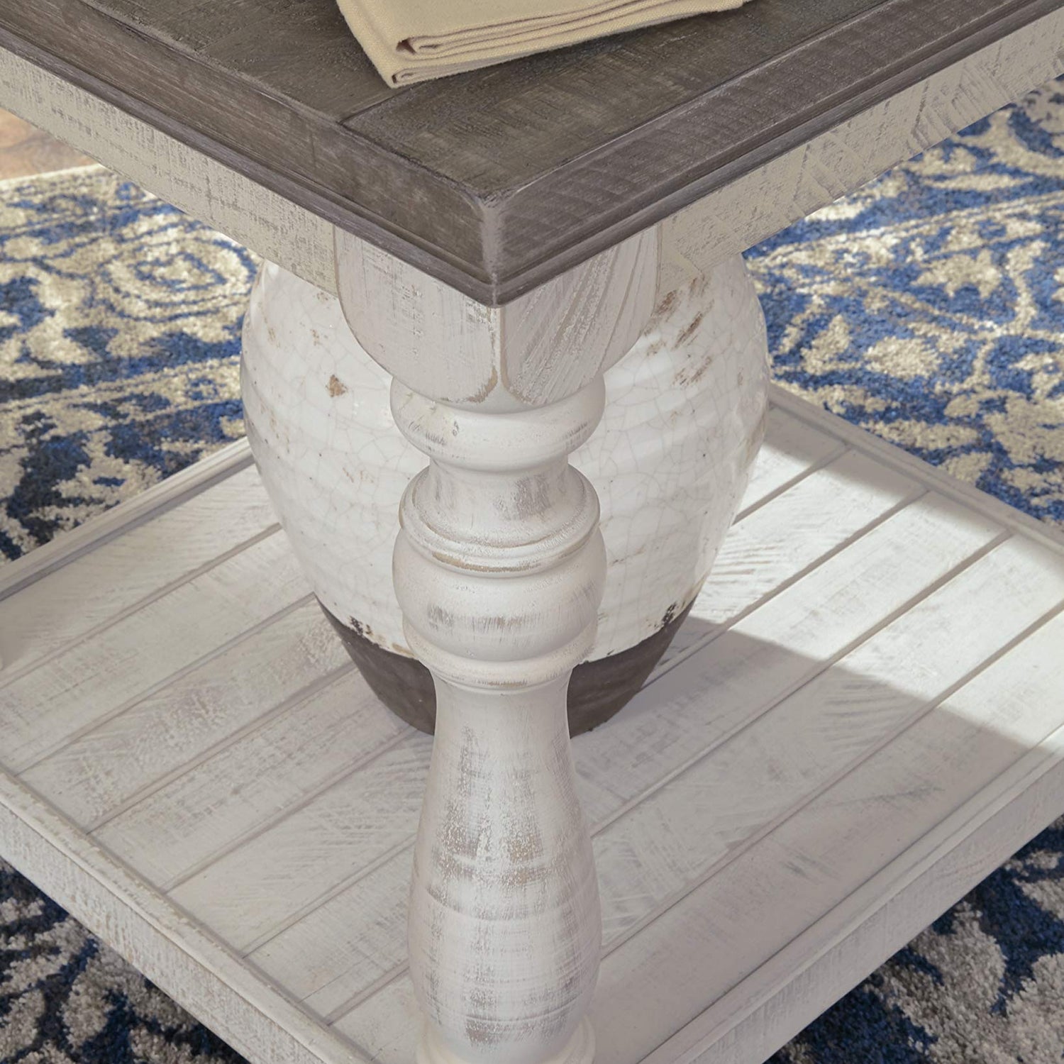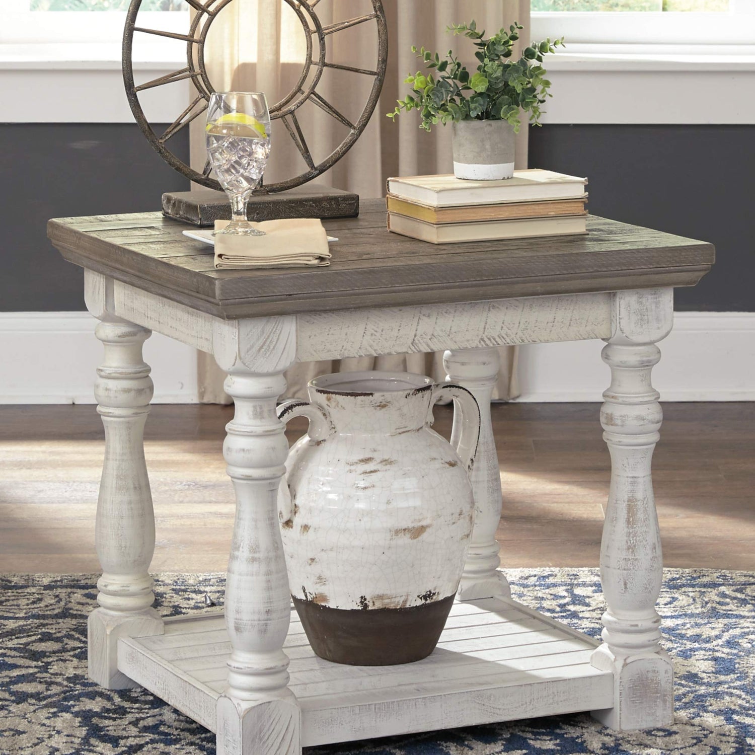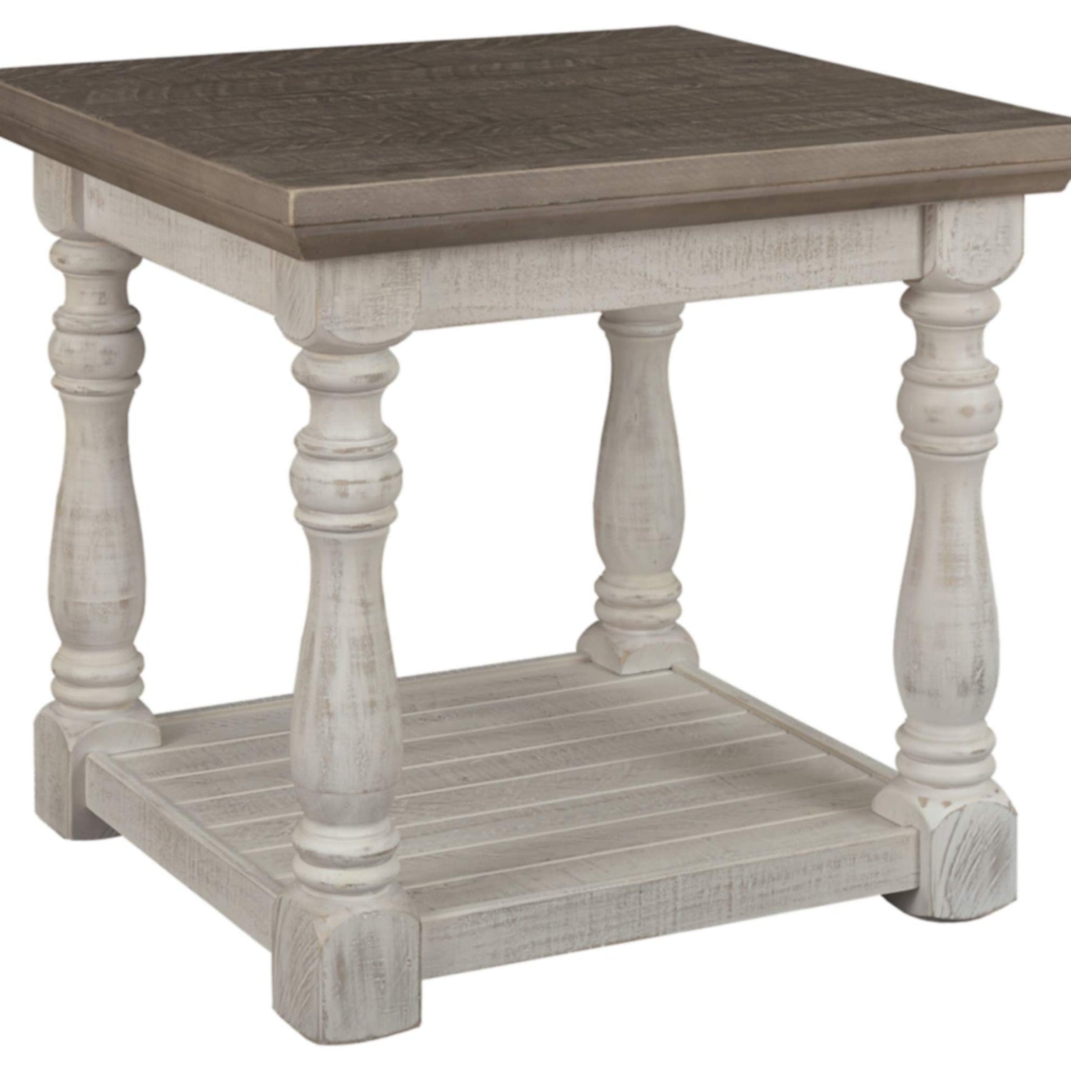 Signature Design by Ashley Havalance Farmhouse Square End Table with Floor Shelf, Vintage Gray & White with Weathered Finish