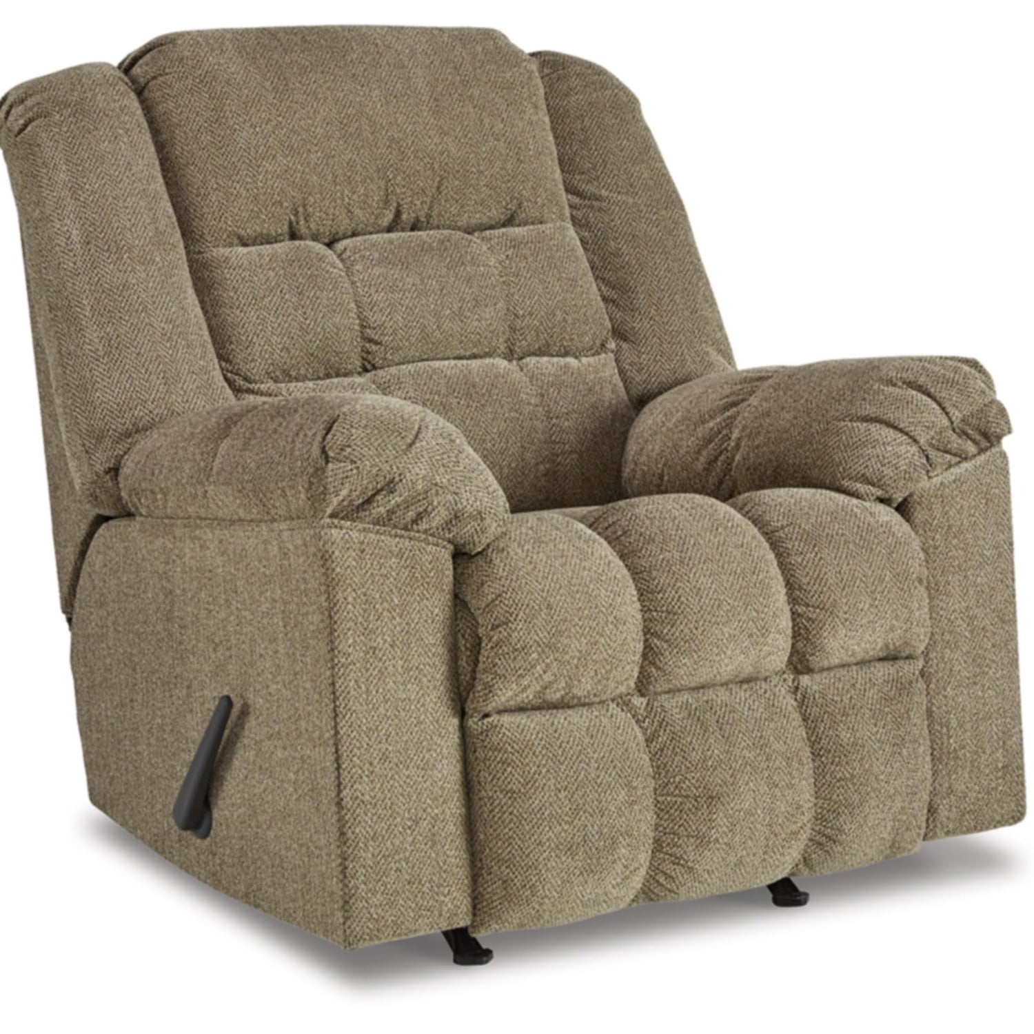 Details: Prioritize comfort while still making a versatile style statement. Complementing a variety of color schemes, this rocker recliner's supremely plush seating lines you up for hours of leisure. Its one-pull reclining motion places you in optimal TV watching and naptime positions. If you’re reaching for a relaxed living room atmosphere, this chair is ready to provide.