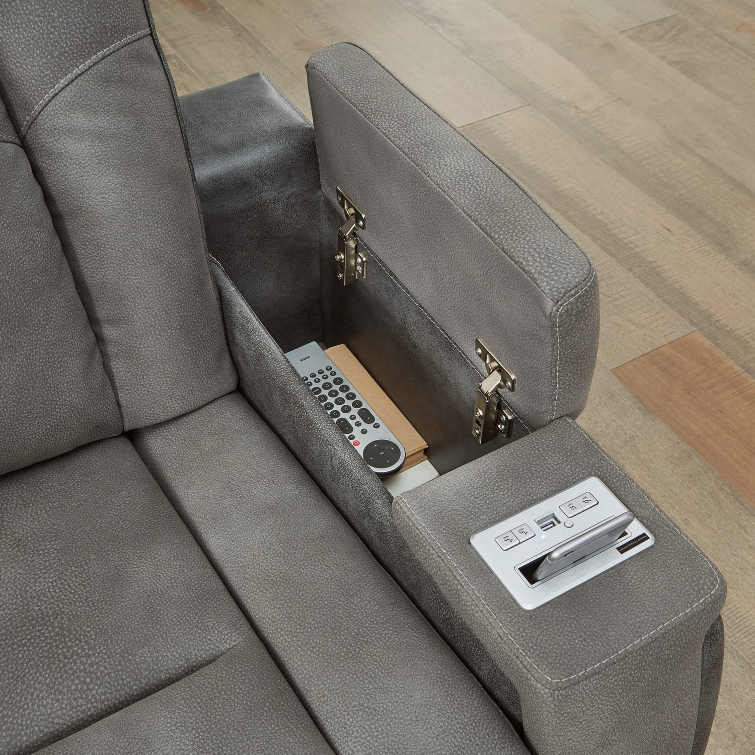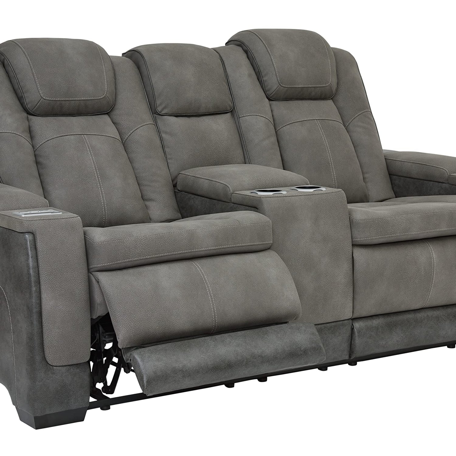 Signature Design by Ashley Next-Gen DuraPella Modern Faux Leather Power Reclining Loveseat with Console & Adjustable Headrest, Gray