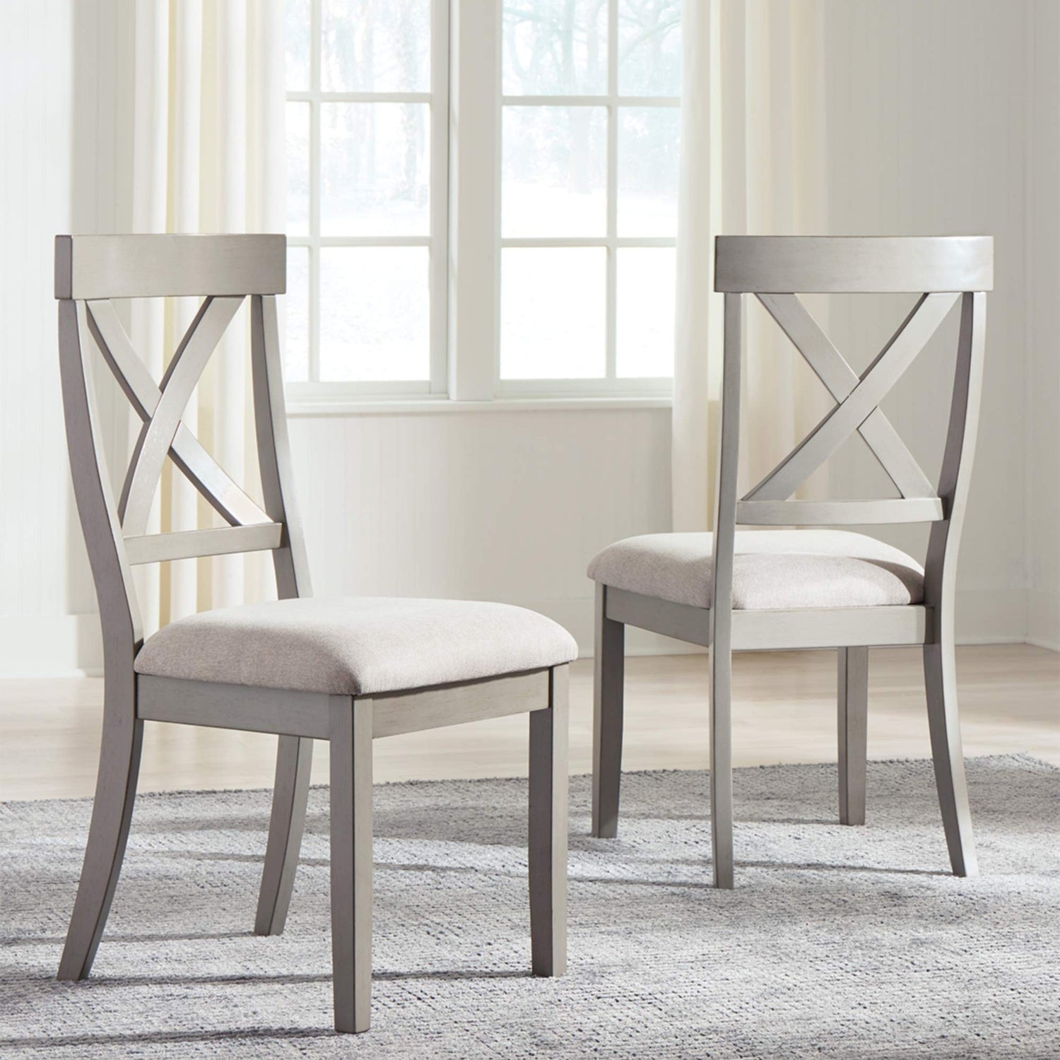 Details: Bring a relaxed yet refined sense of good taste to a space with this wonderfully comfortable dining chair. Clean-lined frame sports a gray finish that’s so easy on the eyes. Covered in a complementary textured beige fabric, the chair’s cushioned upholstered seat goes easy on the body. And with classic X-back styling, this chair is an inspired choice for modern farmhouse living. Offering the latest styles of occasional seating from chairs to benches and bar stools, we combine the current trends with technology to give you the very best for your home. With unmatched prices and quality, we’re your one-stop destination for home accents, furniture, wall decor and more. And we go the extra mile to package, protect and deliver your purchase in a timely manner.