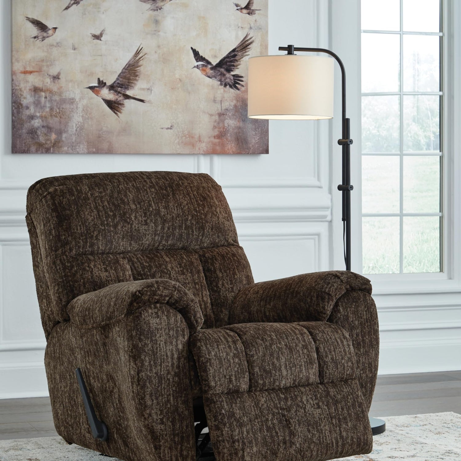 Signature Design by Ashley Rampant Casual Manual Rocker Recliner with Pillow-Top Arms, Dark Brown