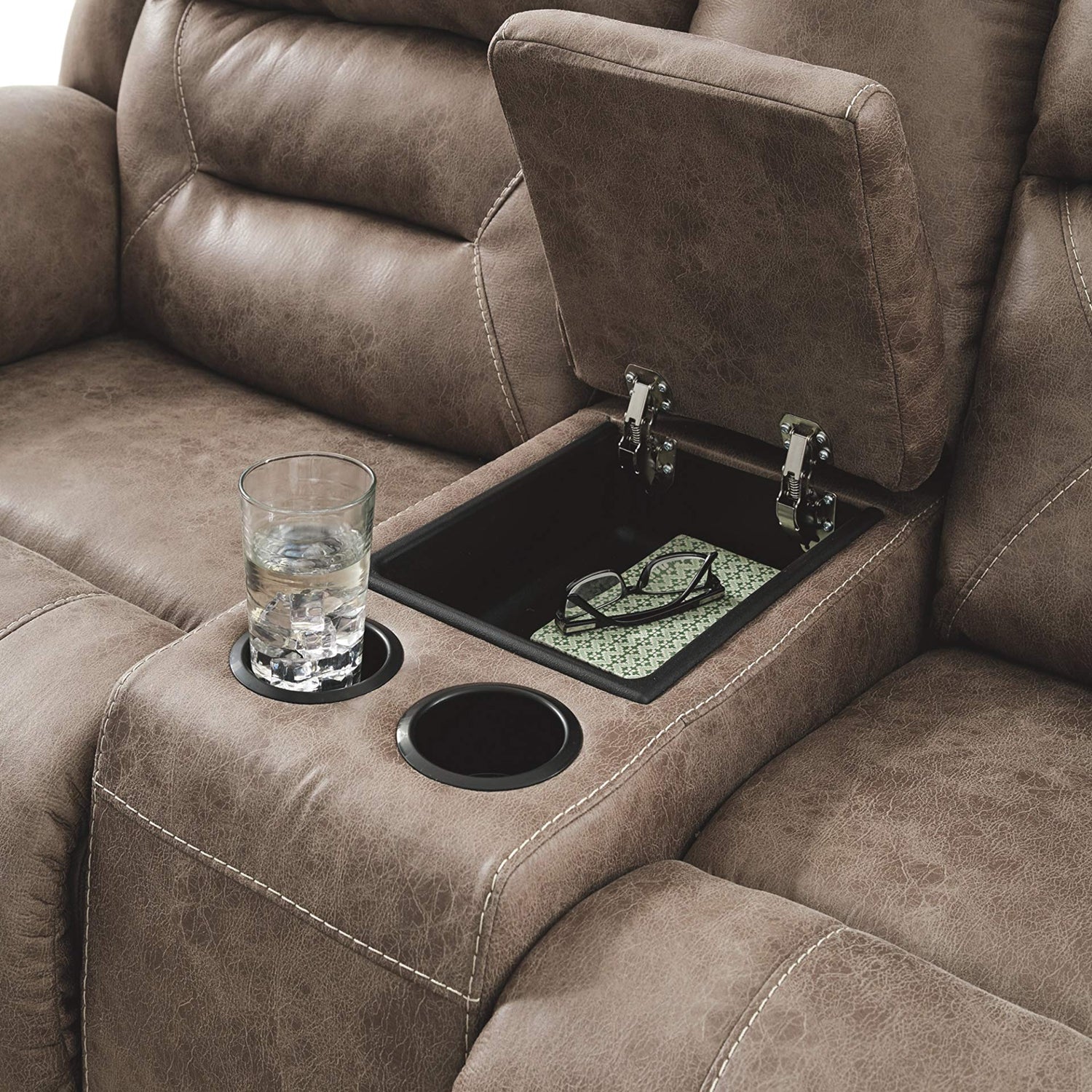 - COMFORT AND DURABILITY: Wrapped in faux leather upholstery. One touch power control with adjustable positions. Center console with storage and 2 cup holders. Power cord included