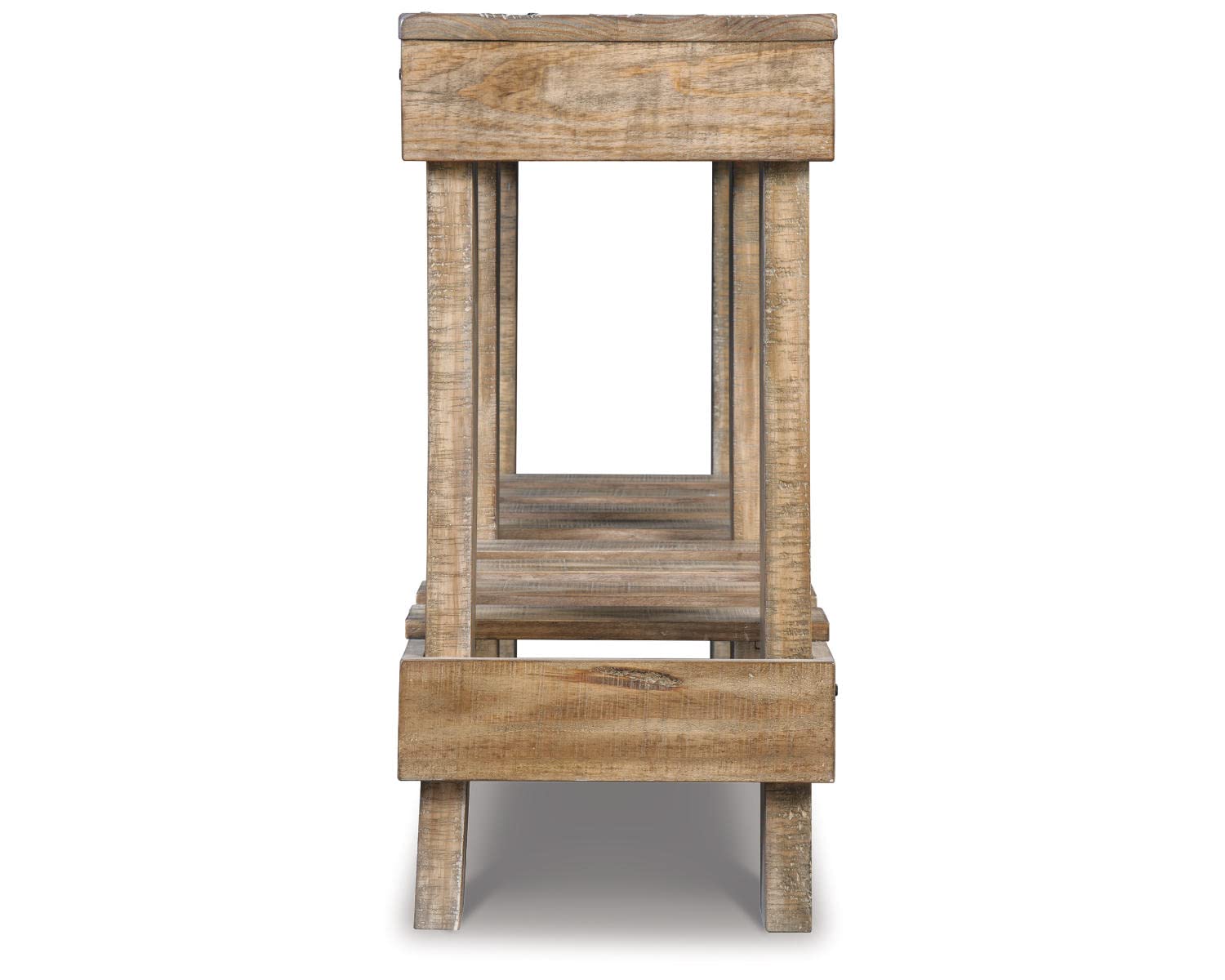 As this console table proves, sometimes less is more. Dramatically transform your living space with the warm and rustic appeal of solid wood construction and open-slat shelving. Washed in a light brown finish, this sofa table sets a new standard for down-to-earth refinement. With a variety of styles and materials, accent tables can provide storage in a living room or give guests a spot to rest their drinks. They can add subtle drama to your decor by presenting a place for artwork, a lamp or a plant. We have a wide selection of coffee tables, console tables and occasional tables, from rustic farmhouse designs to modern openwork styles. They come in a multitude of sizes, too, so you will find one that fits just where you need it.