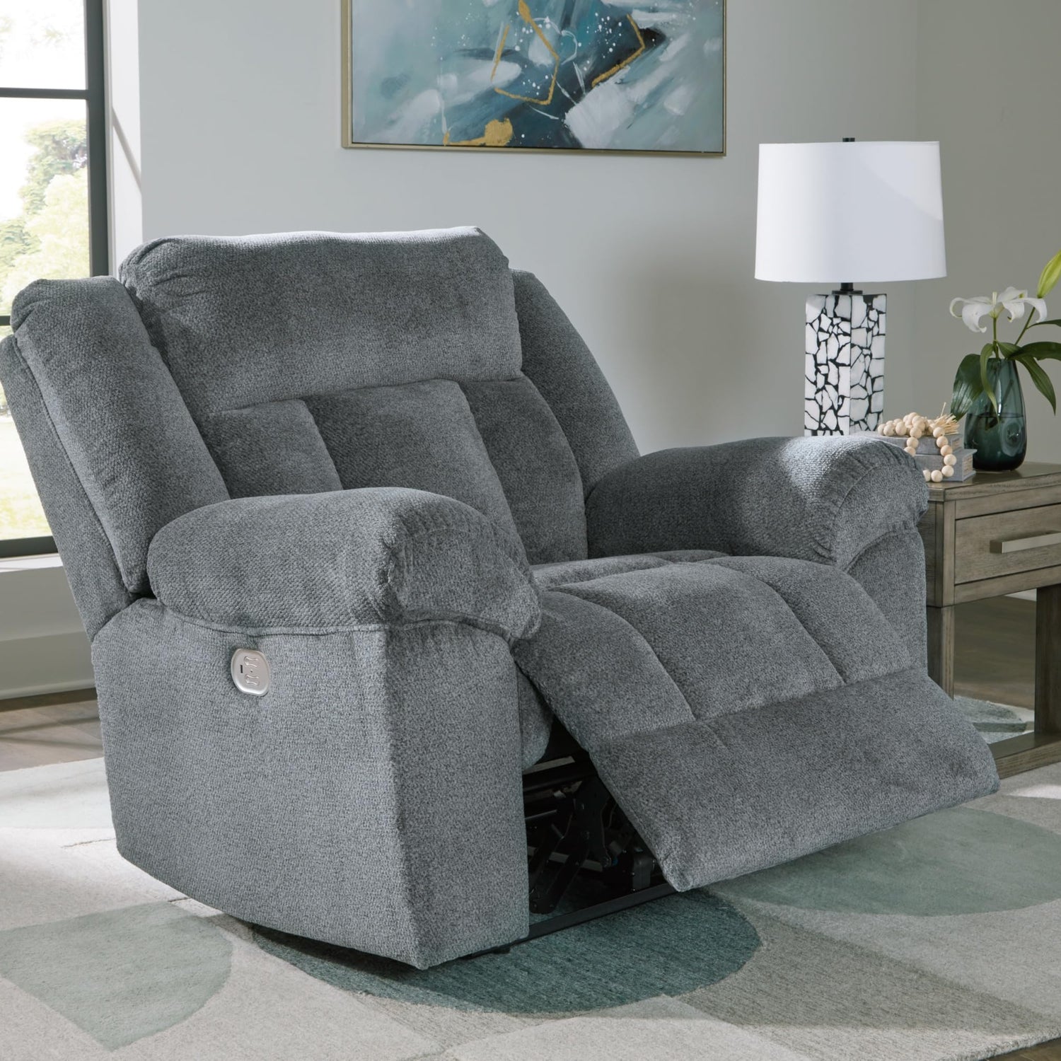 Signature Design by Ashley Tip-Off Casual Wall Hugger Power Recliner with Adjustable Headrest and USB Ports, Gray