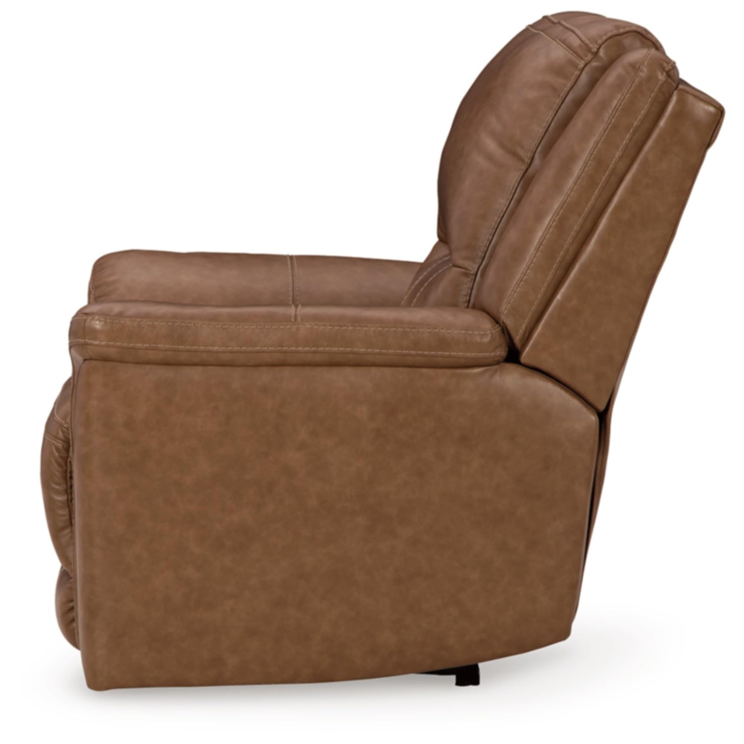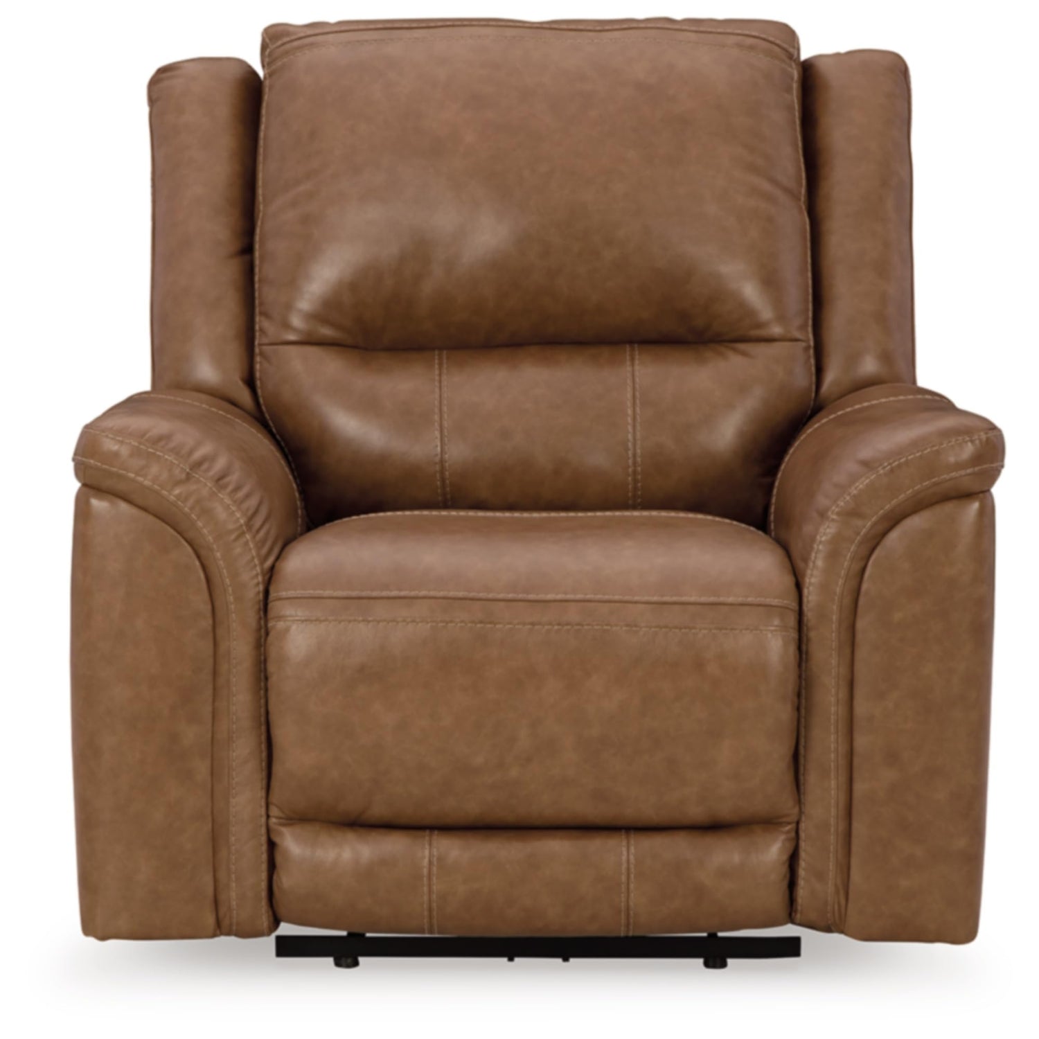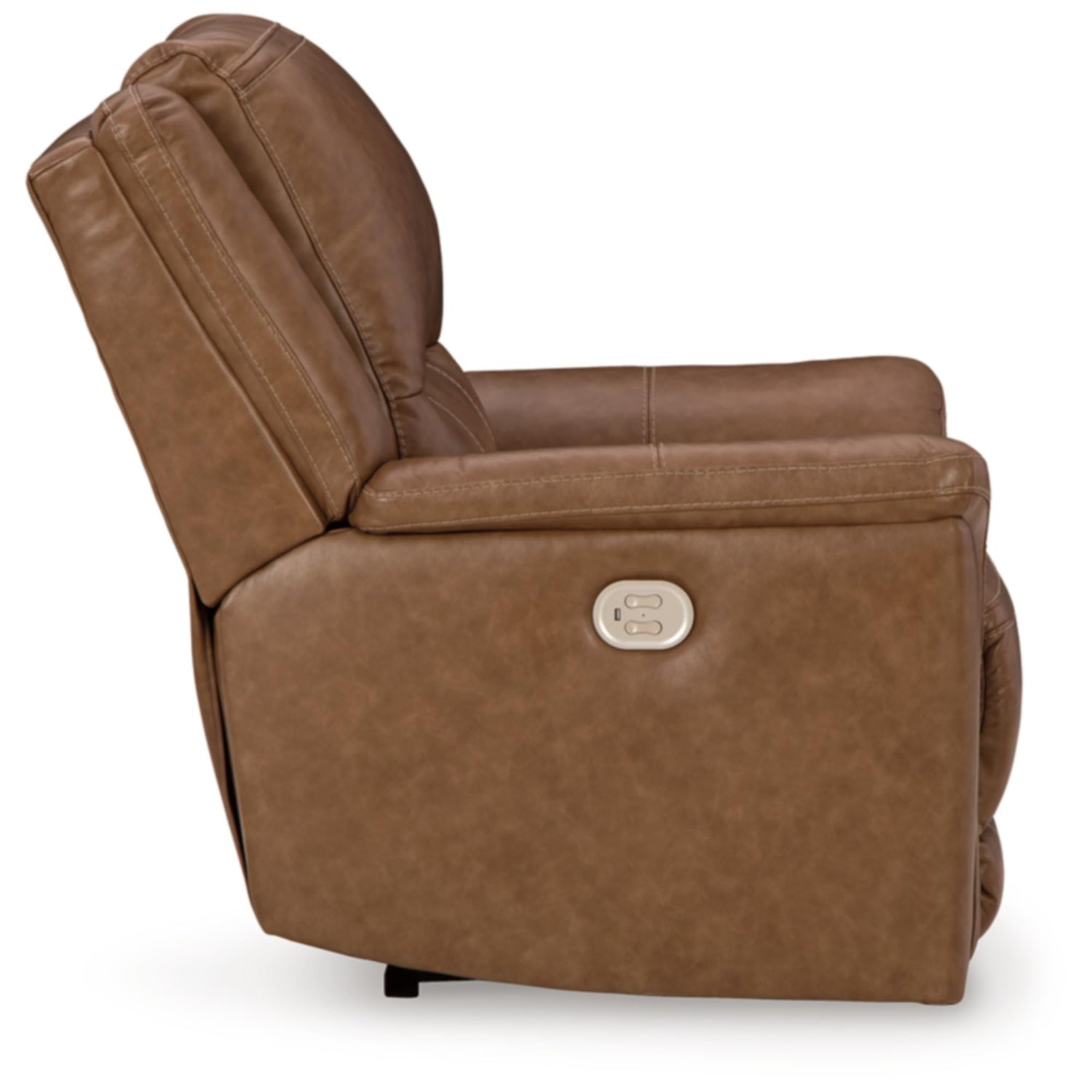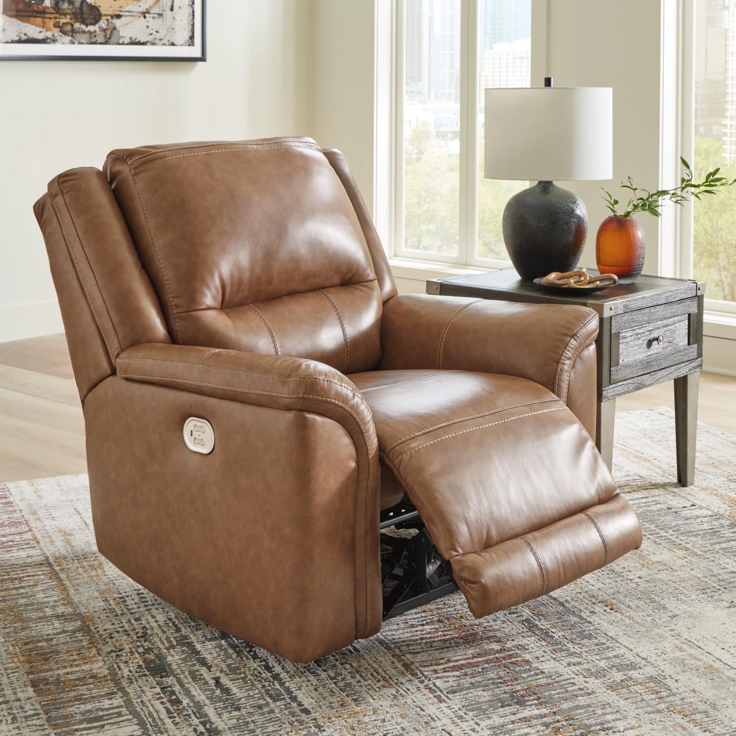 Details: This power recliner delivers comfort and contemporary style in a big (but not bulky) way. Its supple leather and faux leather upholstery, sumptuous cushioning and one-touch control are sure to take you to your happy place. The chair's power adjustable headrest lets you fully recline and still be perfectly positioned to watch TV or read. And thanks to the convenient USB charging port, charging while chilling has never been easier. Signature Design by Ashley is a registered trademark of Ashley Furniture Industries, Inc.