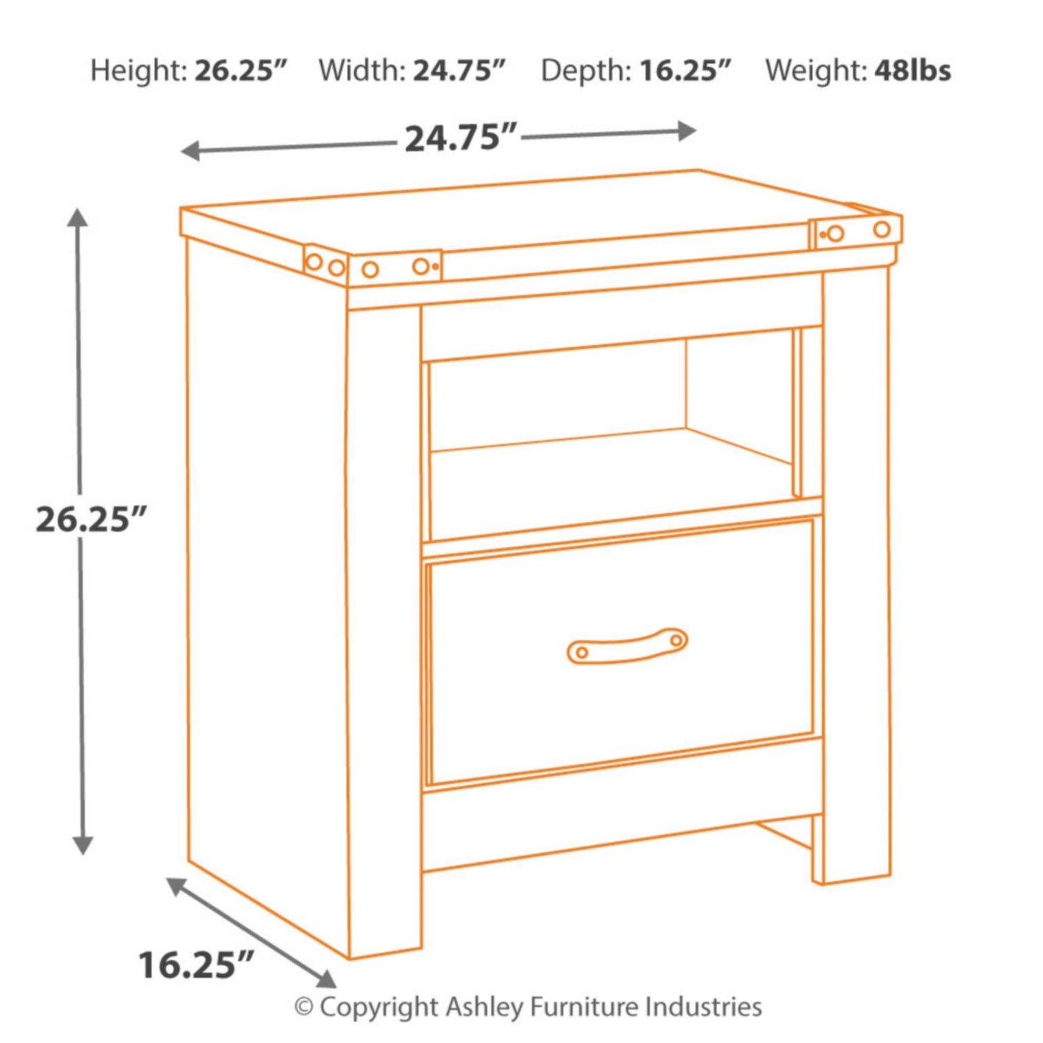 Signature Design by Ashley Trinell Rustic 1 Drawer Nightstand with USB Charing Stations, Warm Brown