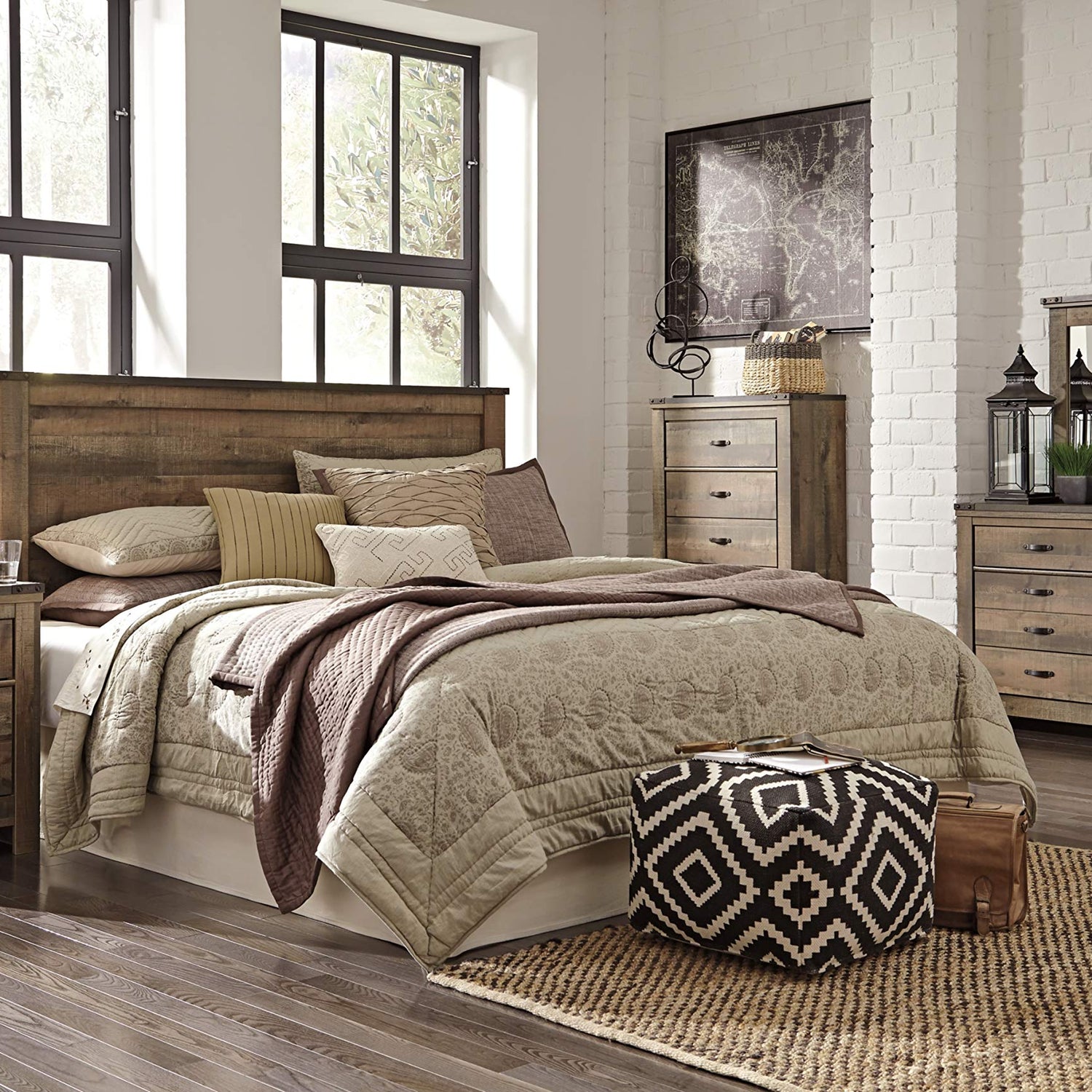 Signature Design by Ashley Trinell Rustic Panel Headboard, King/California, Warm Brown