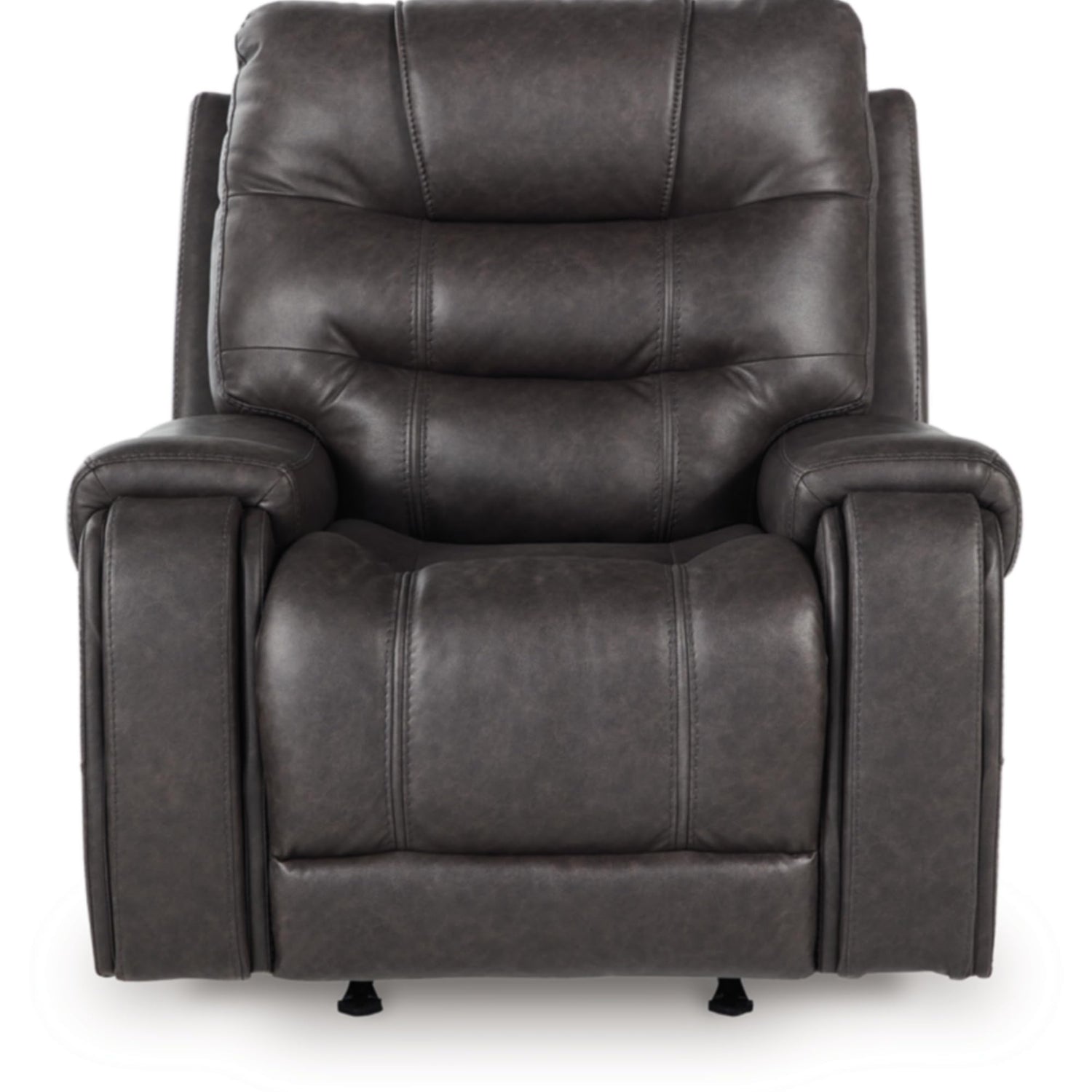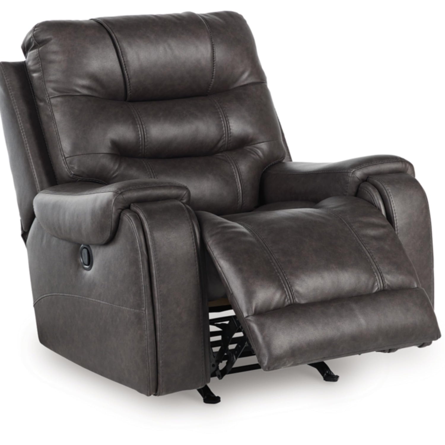 - QUALITY CRAFTED: Pull tab reclining motion. Corner-blocked frame with metal reinforced seat. High-quality foam cushions wrapped in poly fiber. Faux leather upholstery. Gentle rocking motion