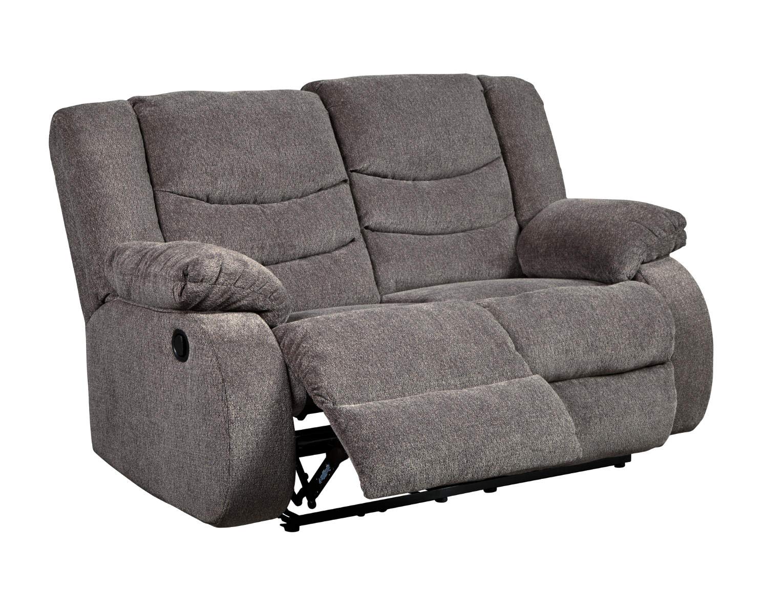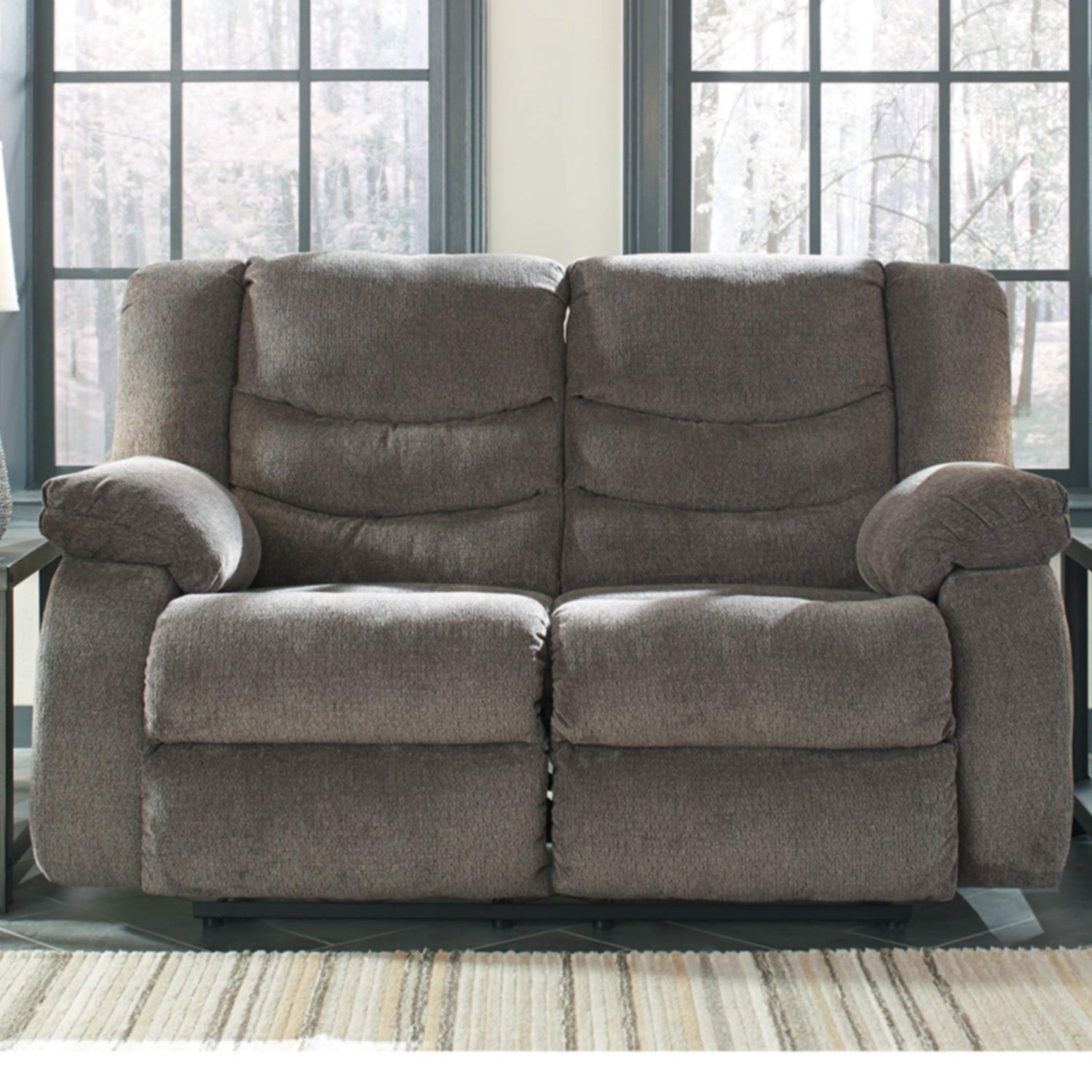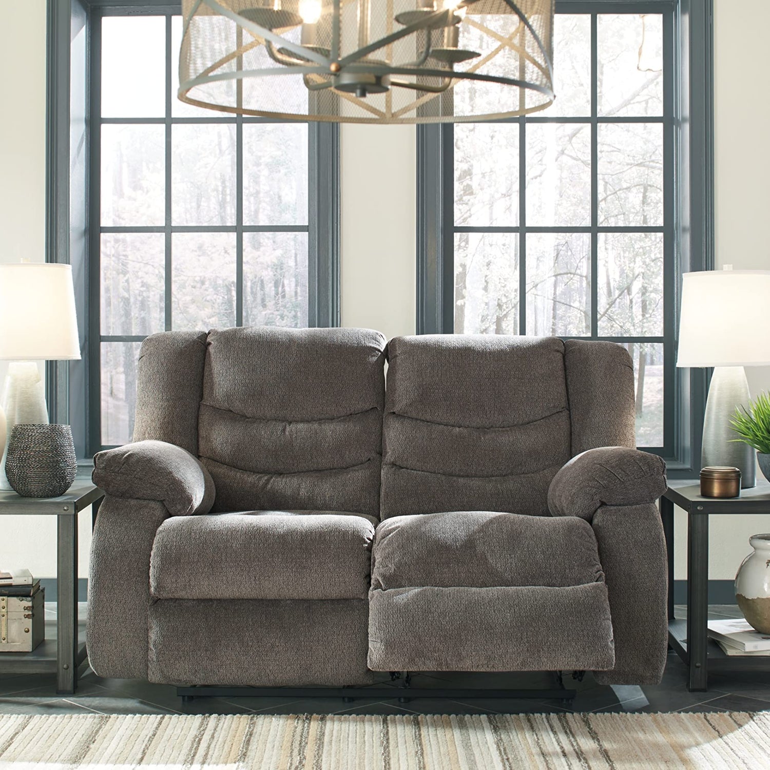 Signature Design by Ashley Tulen Modern Manual Pull Tab Reclining Loveseat, Dark Gray