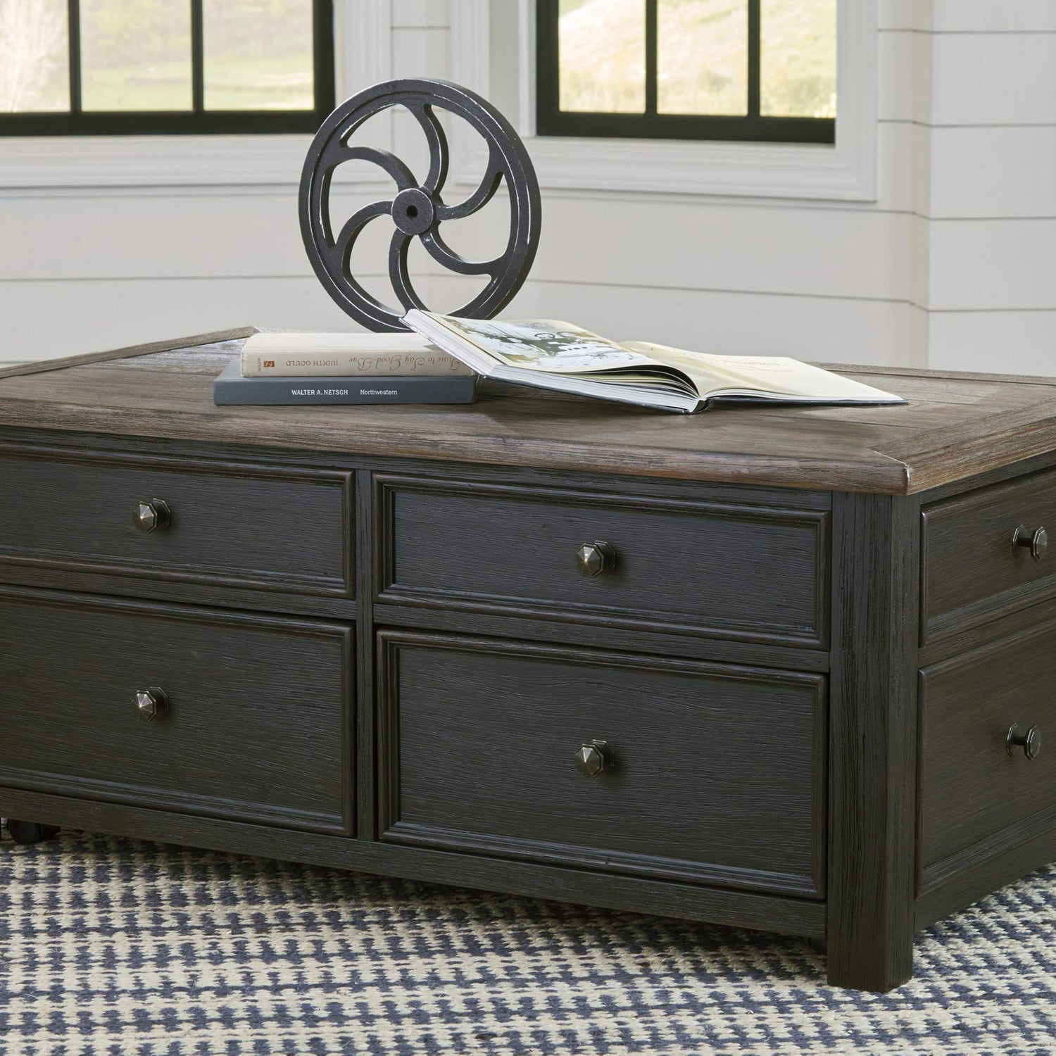 Signature Design by Ashley Tyler Creek Rustic Farmhouse Lift Top Coffee Table with Drawers, Brown & Black