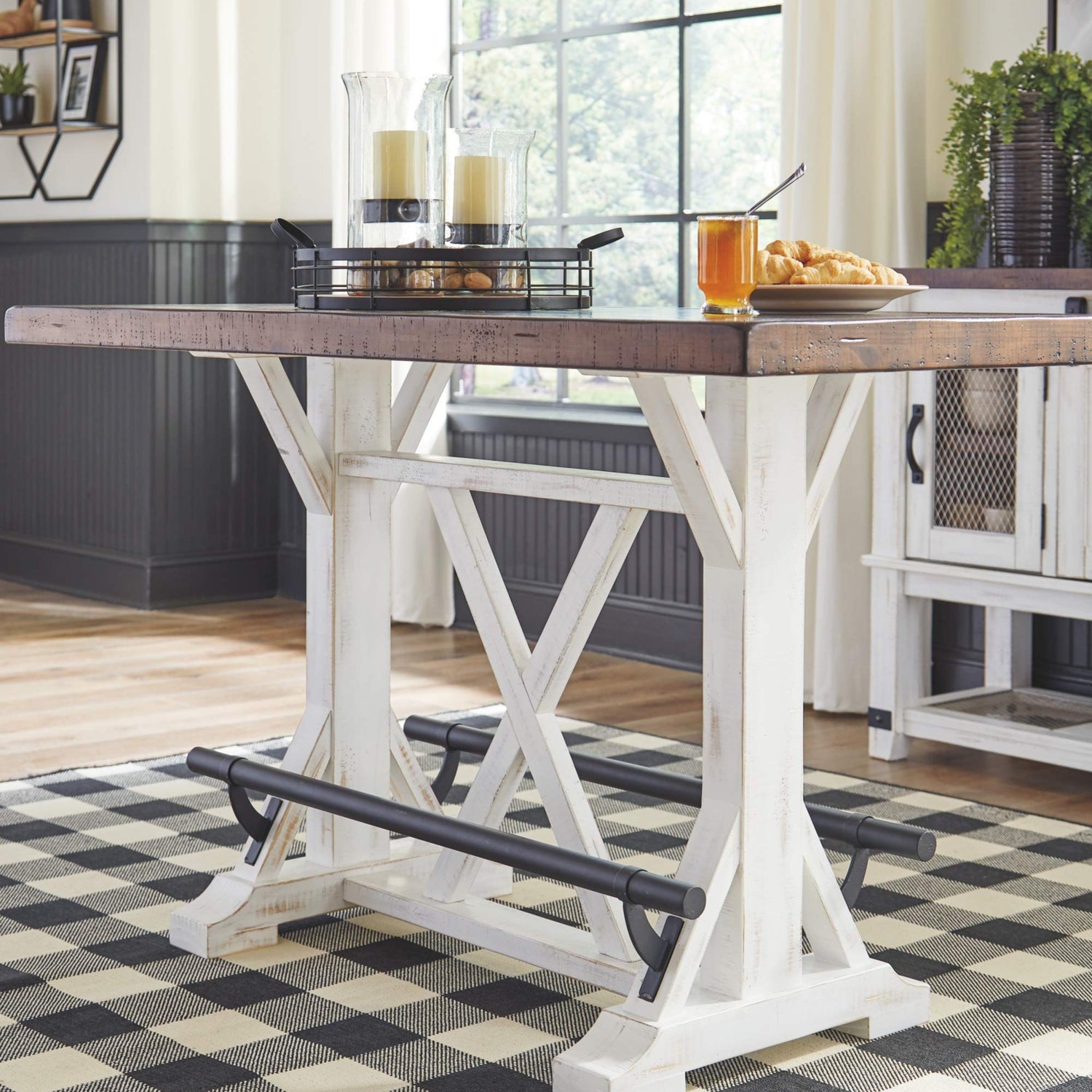 Signature Design by Ashley Valebeck Rustic Farmhouse 36" Counter Height Dining Table, Brown & White
