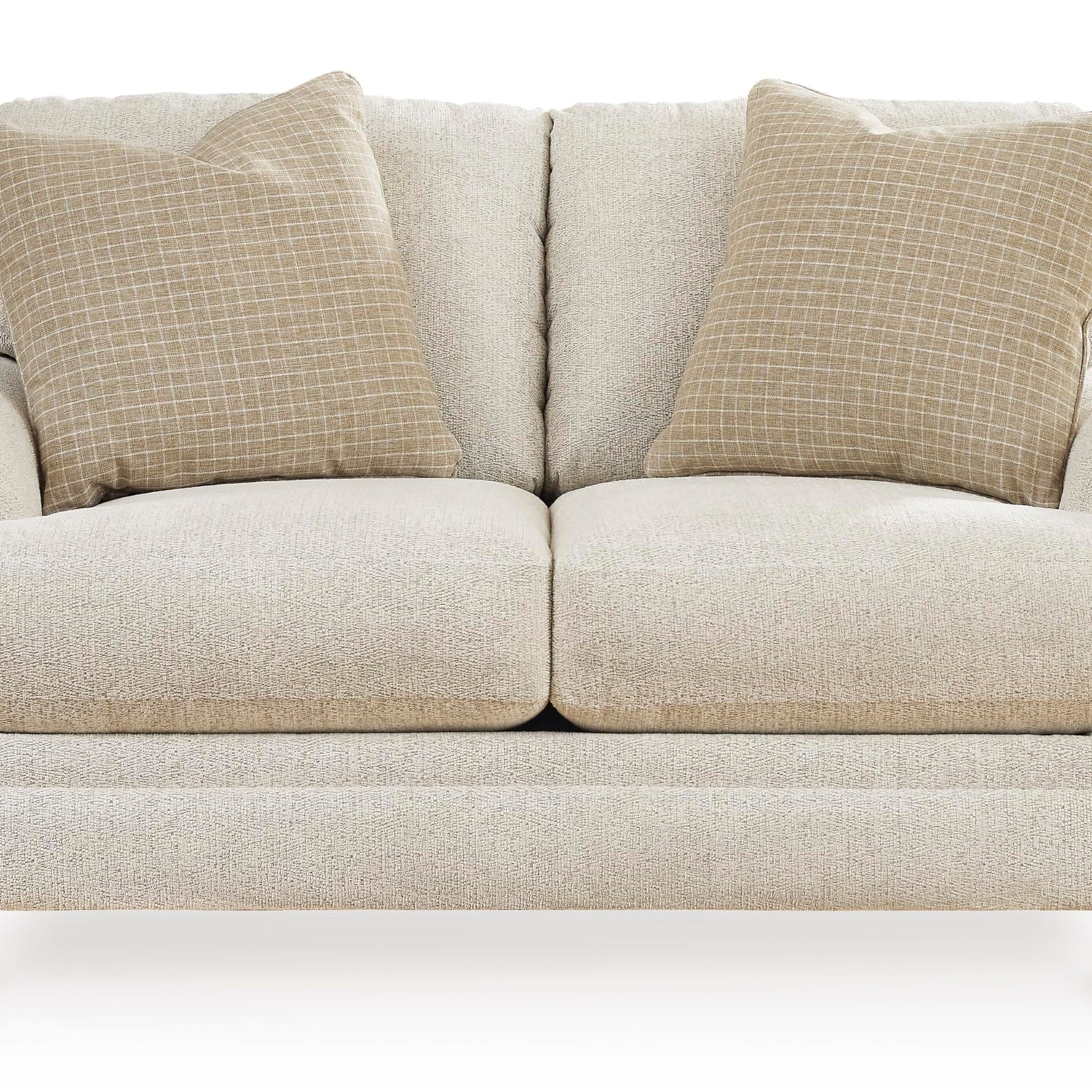 Details: Seeking simple, transitional style? Enter this loveseat. Its commitment to carefree comfort is right at home with your relaxed living room aesthetic. A subtle chevron effect elevates the everyday charm of the neutral fabric, while the deep, plush seats bring a cozy vibe to this chic piece.