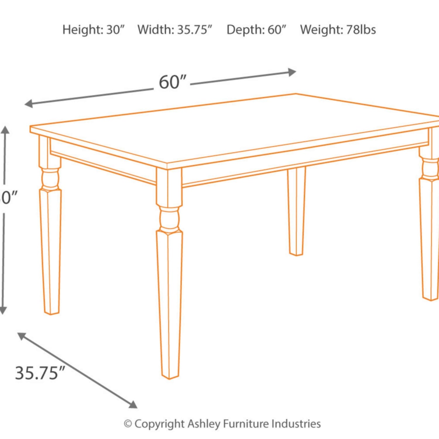 - CASUAL DINING ROOM TABLE: Rectangular table measures 36"W x 60"D x 30"H