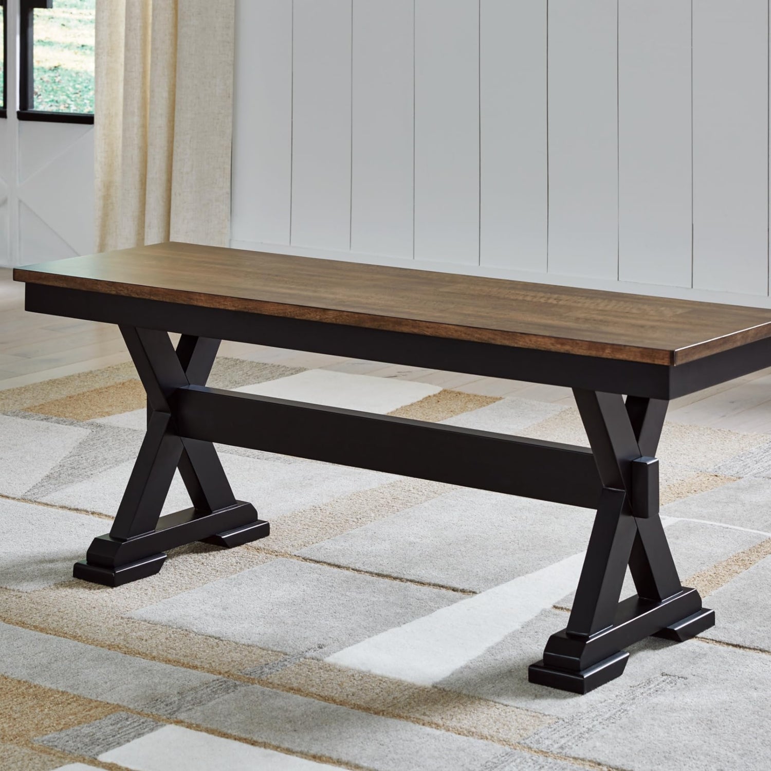 Signature Design by Ashley Wildenauer 50" Dining Bench, 48" W x 16" D x 19" H, Dark Brown & Black