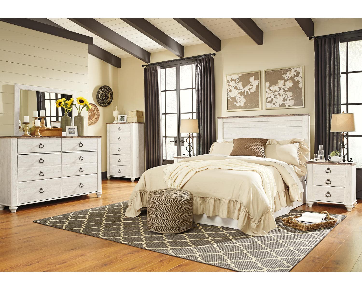 Transform your bedroom into a serene coastal retreat with the Willowton Cottage Farmhouse Queen Panel Headboard in a charming whitewash finish by Signature Design by Ashley. This rustic panel headboard is a perfect embodiment of shabby chic aesthetics, inviting you to indulge in the beauty of a beachfront escape right at home.