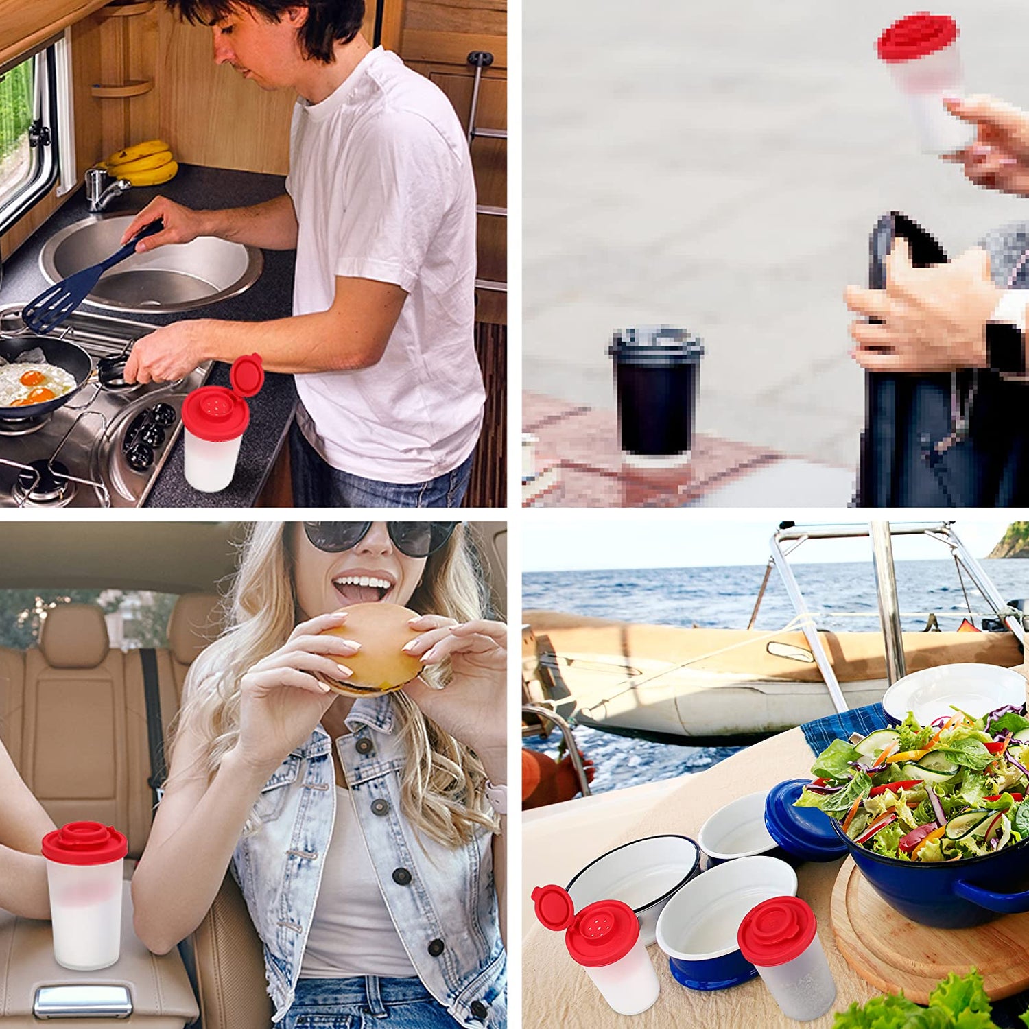 - REUSABLE PLASTIC SALT AND PEPPER SET – reusable salt and pepper shakers in various sizes, perfect for lunch boxes, camping, picnics or even traveling. Spill-proof salt and pepper pots that are airtight, preventing your spices and salt from getting damp