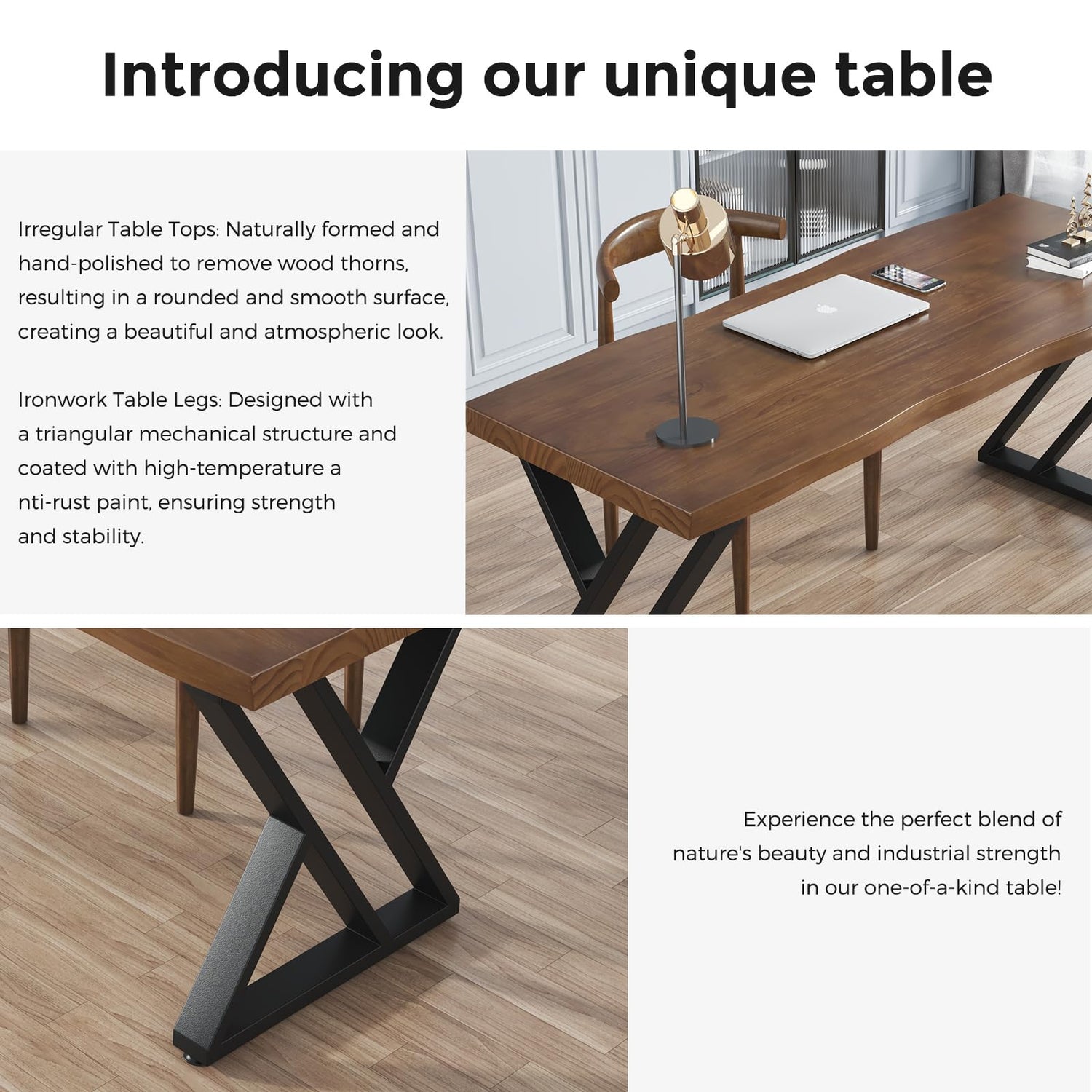 - 【Crafted from Solid Wood and Sturdy Metal】Designed for long-lasting performance, our desk boasts a solid wood top and robust metal legs. The combination of these high-quality materials ensures exceptional durability and stability, even during the most demanding tasks.
