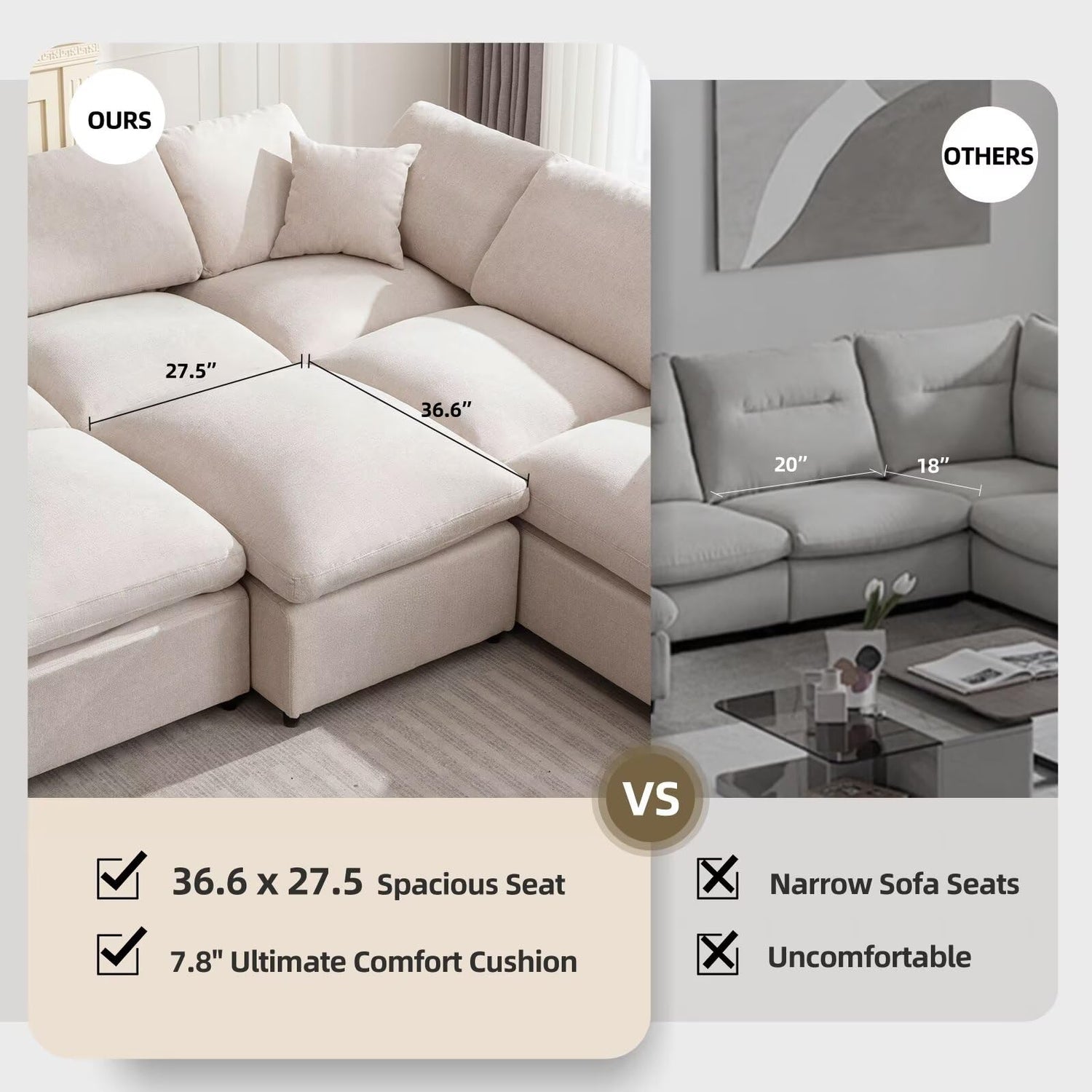Siiejia Modular Sectional Sofa Modern Oversized Chenille Cloud Couch with Movable Ottoman 7 Seater L-Shaped Sofas Comfy Couches for Living Room Spacious Space Office Lounge, Beige