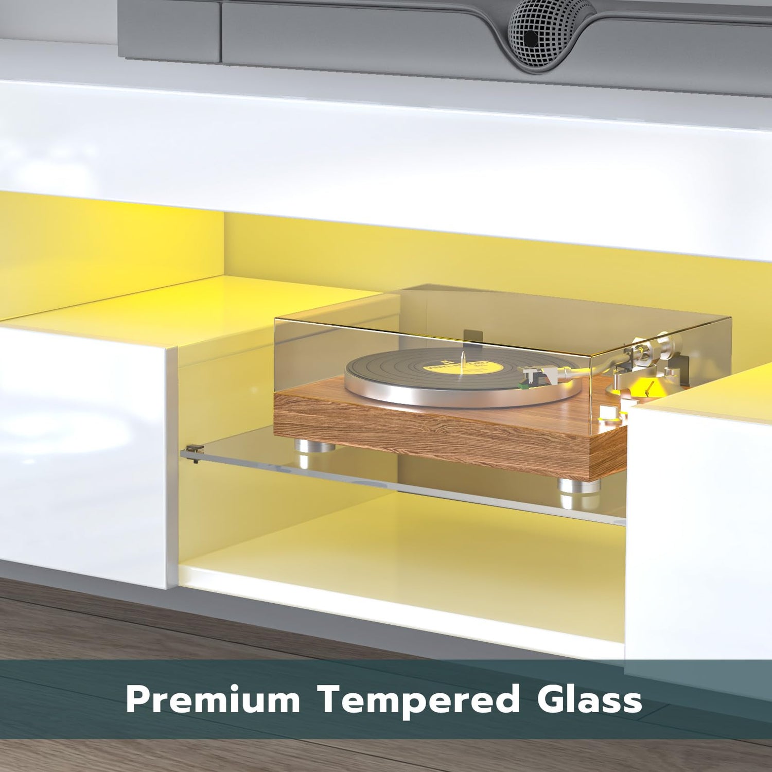 - Ambience Lighting: The TV stand is equipped with 16 colors of RGB LED lights, which can be freely adjusted by remote control. This gives you plenty of options for choosing the right light for your living room. With this light, you will enjoy a great atmosphere when watching TV or playing games in the dark