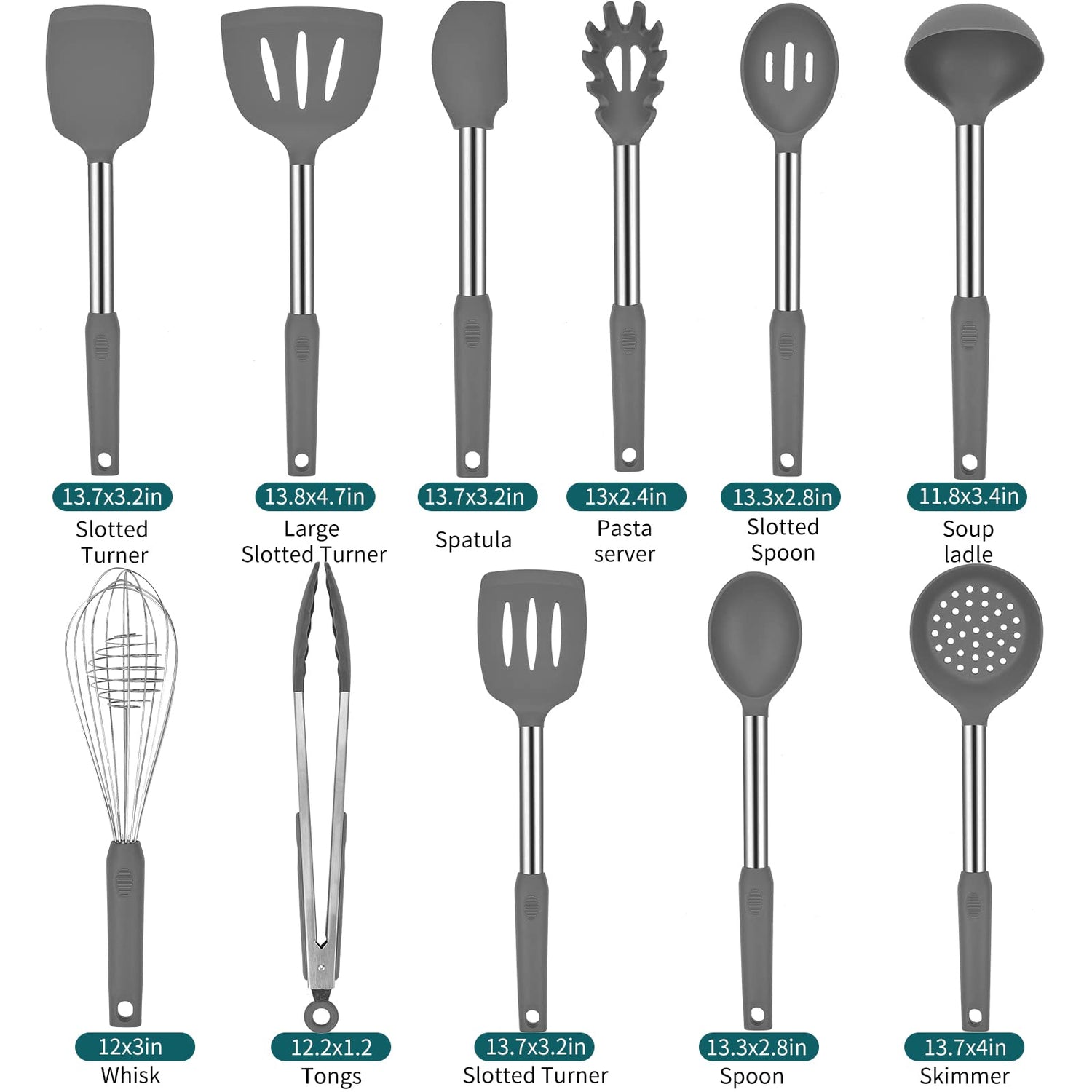 - HANDY, STURDY, LIGHTWEIGHT – We’ve got the right combination of superior materials (silicone and stainless steel) made to enhance your cooking experience. Firm handles, ergonomic design. All easy to use, store & clean. FUN upgraded Cooking