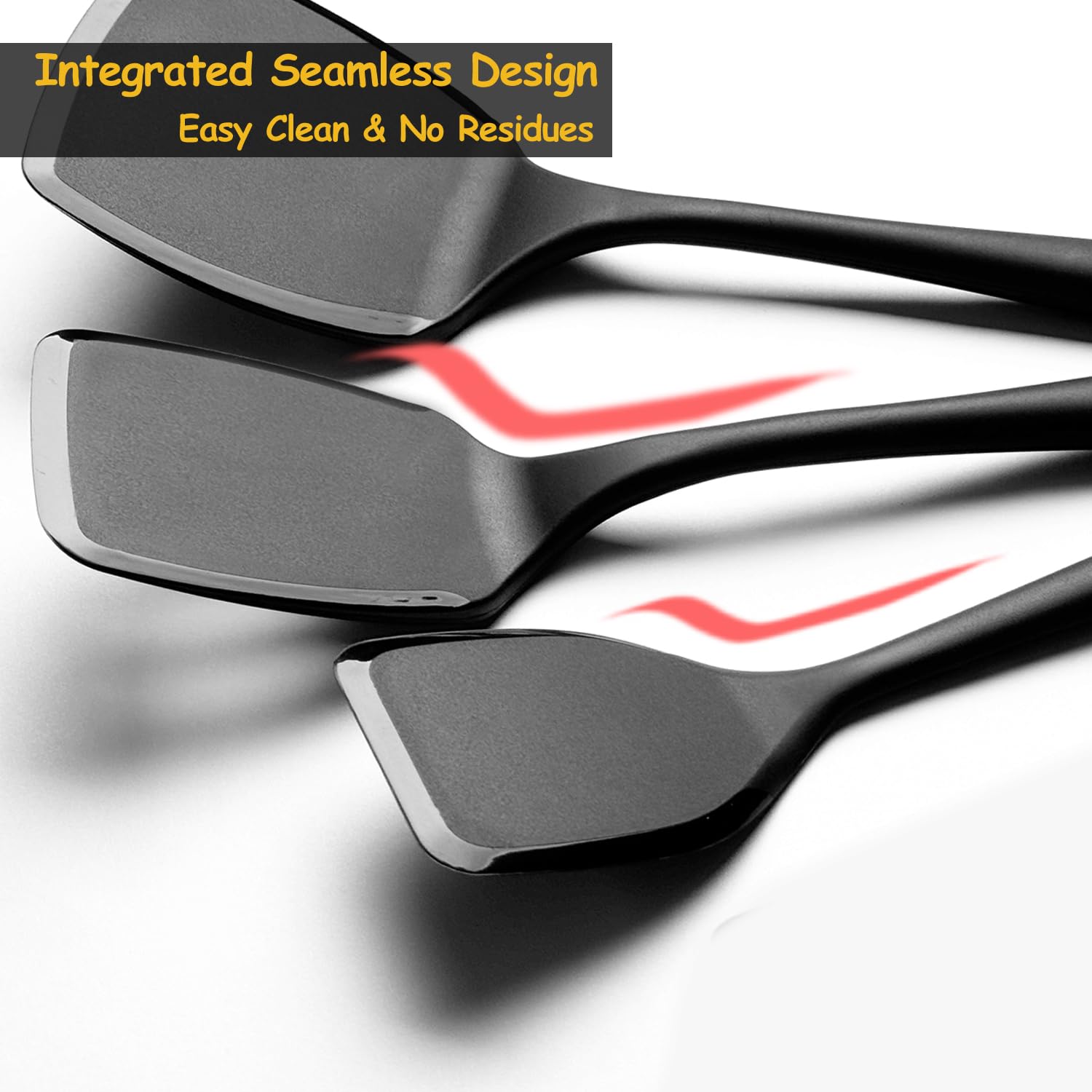 Silicone Spatula Set, 600°F Heat Resistant Silicone Spatula Turner Flipper for Cooking, Non Stick and Non Scratch Kitchen Utensils for Eggs, Burgers, Crepes, 2-Pack Solid Spatulas Set, Black