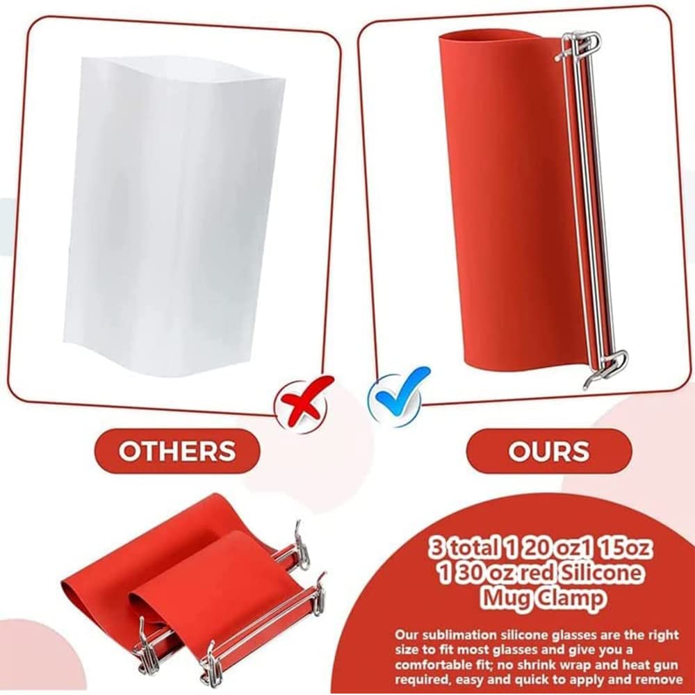 - SILICONE CUP CLIP PACKAGE CONTENTS: it is a perfect combination for glass sublimation projects, enough for your DIY needs in your daily life.Sublimation Kit Includes 1 pcs silicone strap for 20oz tumbler, 1 pcs transfer tapes, 1 pair heat resistant gloves.