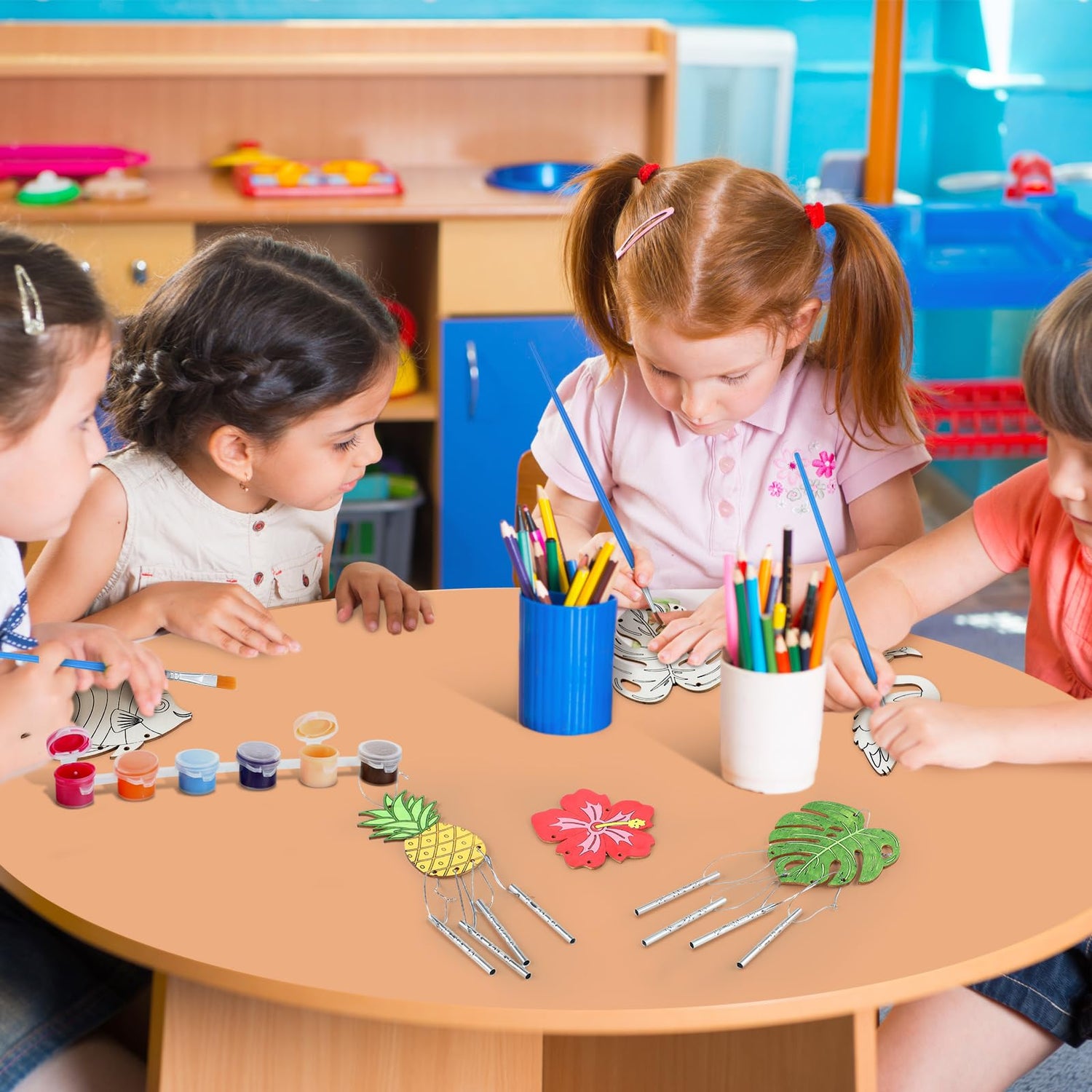 Silipull 24 Sets Summer Wind Chimes Craft for Kids Make Your Own Hawaiian Wind Chimes DIY Tropical Wooden Hanging Ornament for Kids Summer Hawaiian Party Outdoor Decoration