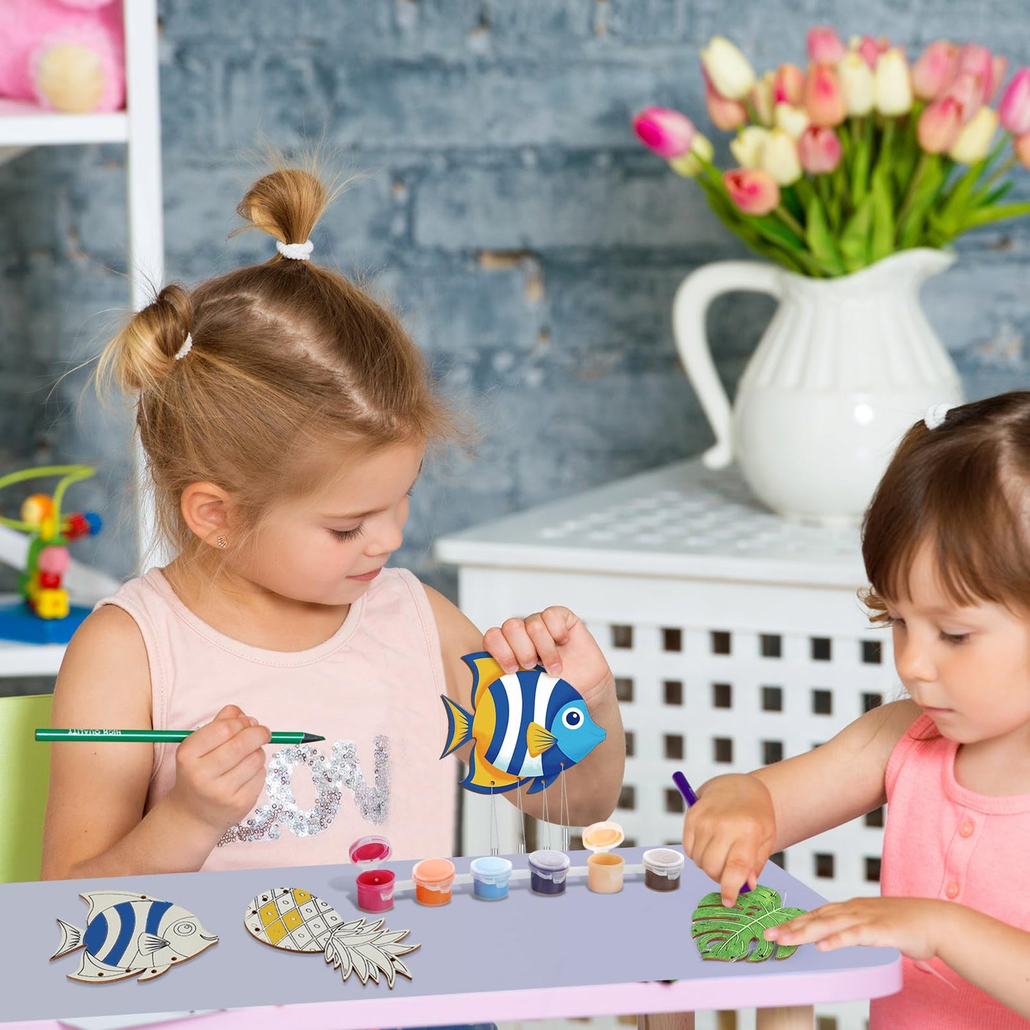 - Tropical Wind Chime Kit Includes: our DIY wooden tropical wind chime kit includes 24 wooden pieces (6 designs, 4 pieces each), 96 pieces of wind chime tubes, 2 pieces of paintbrushes, 12 color paints), and 48 pieces of 39.4 inches silver wire; With a variety of styles and sufficient quantity, this kit can meet the needs of children to design wind chimes during summer activities