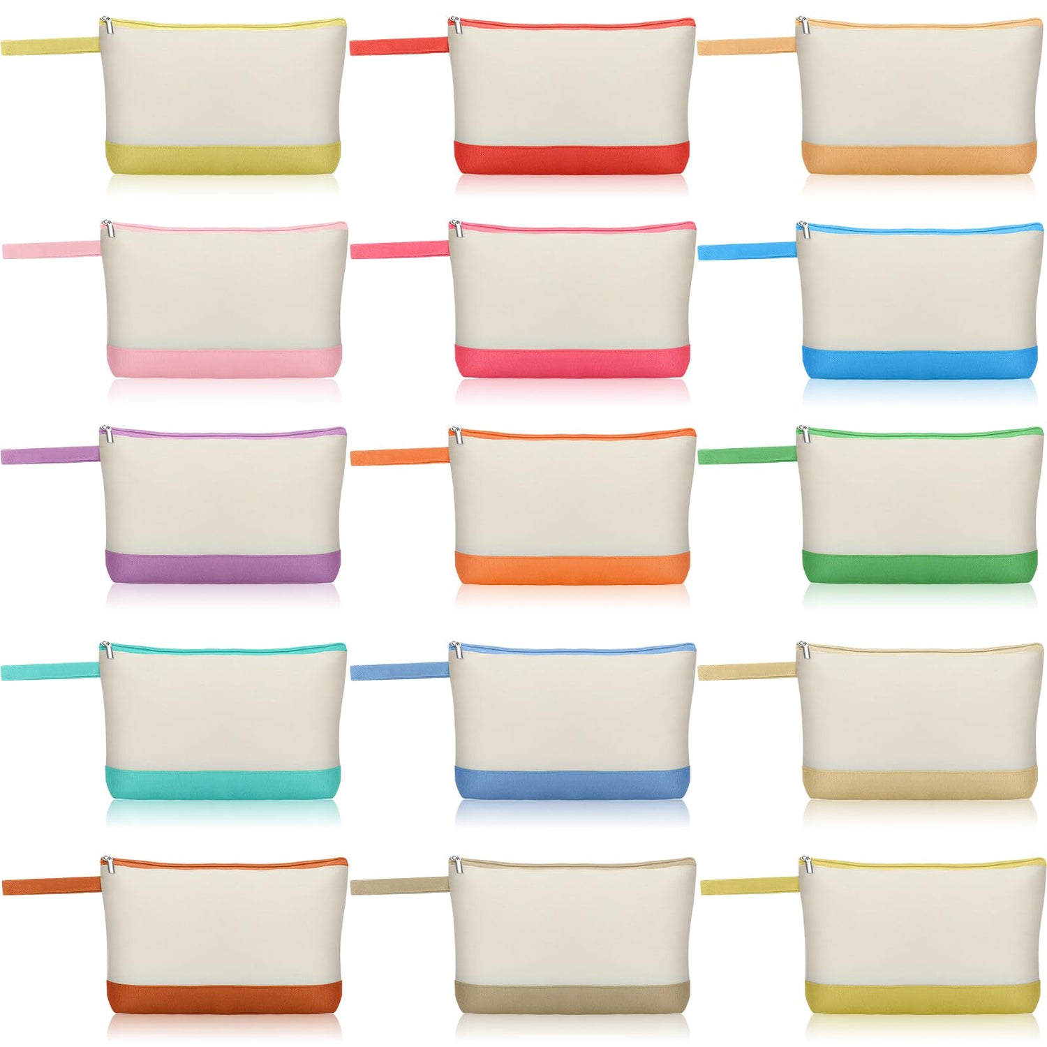Silkfly 15 Pcs Cotton Canvas Makeup Bags Canvas Cosmetic Bag 10.2 x 5.5 x 2 Inches Two Tone Makeup Bags Bulk with Zipper Blank DIY Pouch with Bottom Travel Toiletry Pouch for Women (Cute)