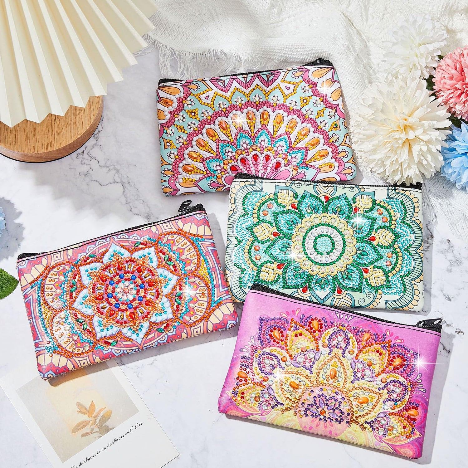 Silkfly 4 Pcs Diamond Painting Art Makeup Bags DIY Purses Toiletry 5d Handmade Double Design Diamond Painting Cosmetic Bags Bulk with Zipper Rhinestone Accessories for Women(Mandala)