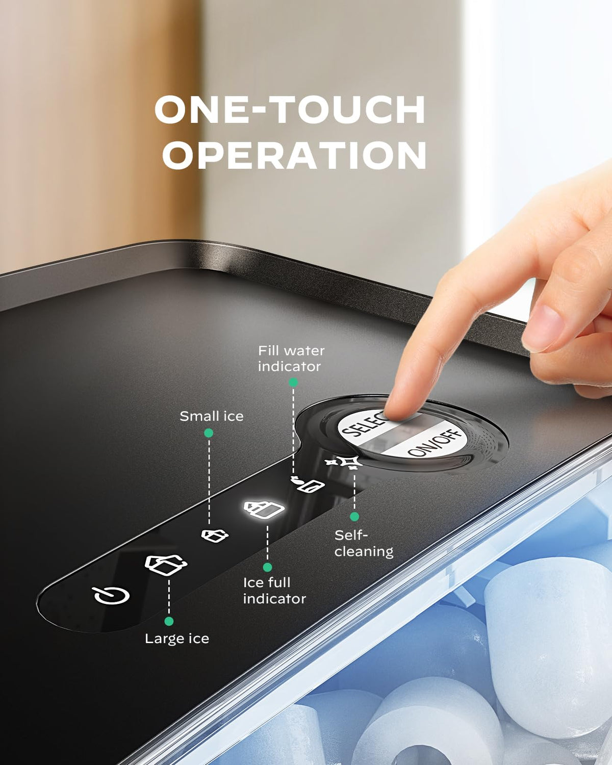 - ➤Smart & Simple Operation: The indicator on the countertop ice machine alerts you when the basket is full and reminds you when to add water if the ice machine is running low. Choose from two sizes of ice for flexibility when making cocktails or refreshing drinks.