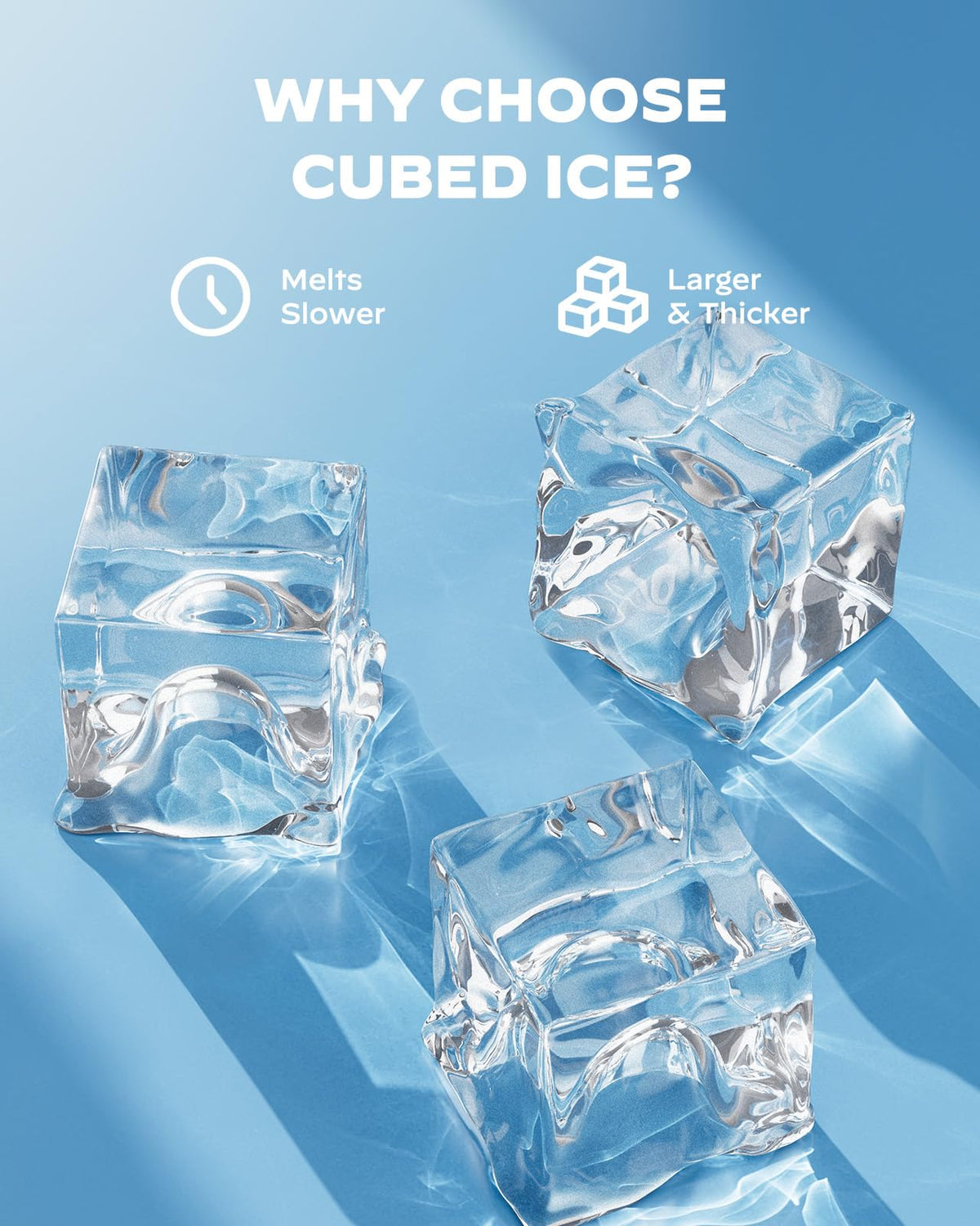- Premium Ice Cubes: Unlike bullet ice cubes, this Silonn ice maker produces crystal-clear ice cubes that melt slowly, are odor-free, and cause less dilution. Plus, you can control ice thickness for smoothies and cold beverages, customizing the style of ice that you prefer.