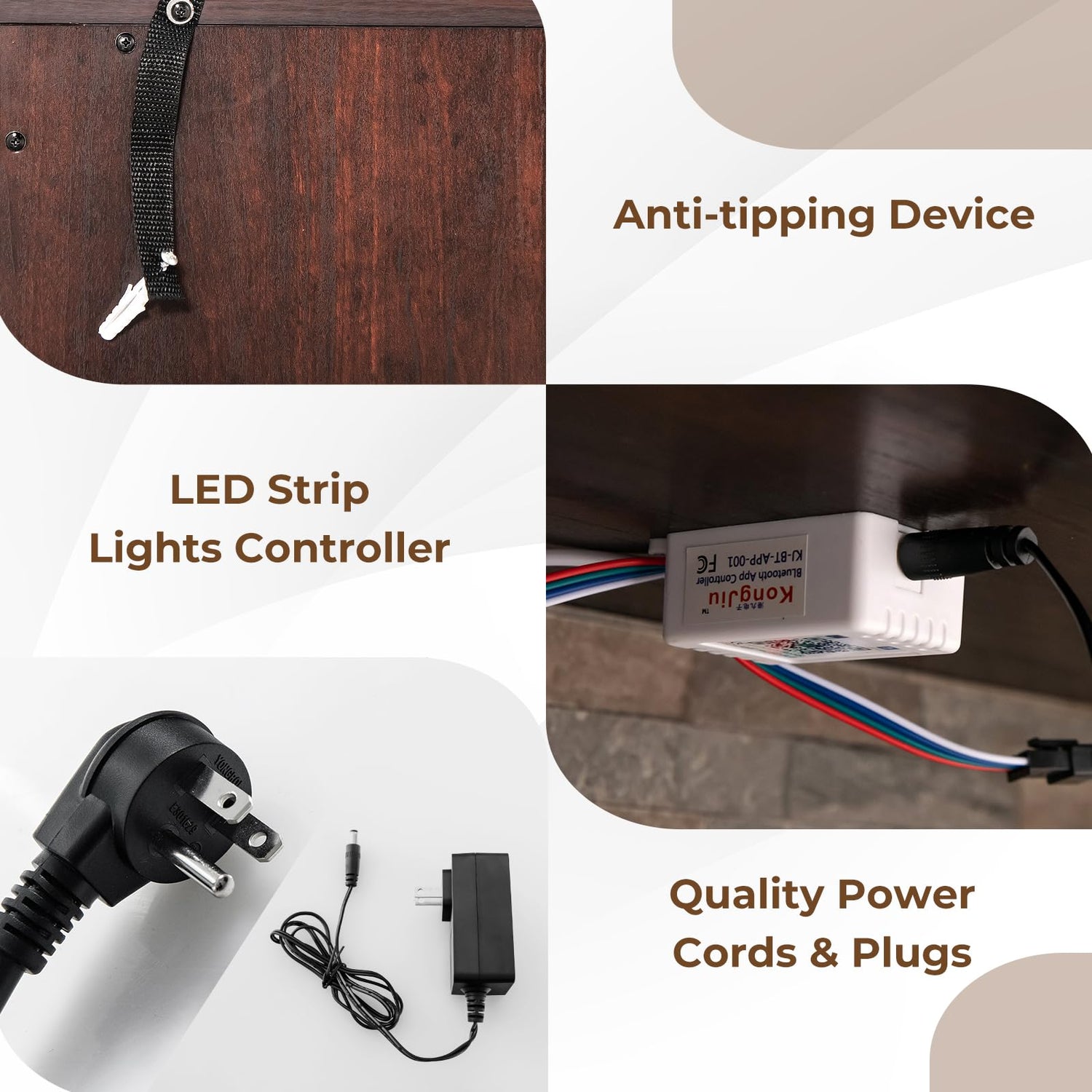 - 【3 Smart Control Methods】TV stand with fireplace not only do you have remote control to adjust the lights and fireplace, you can also use APP to control it. Simply just download the [LED LAMP] APP on your phone, and you can use your phone to adjust the light's blinking, colors, timings and more. Control panel also allows you to easily control the temperature of the fireplace, timing, etc.