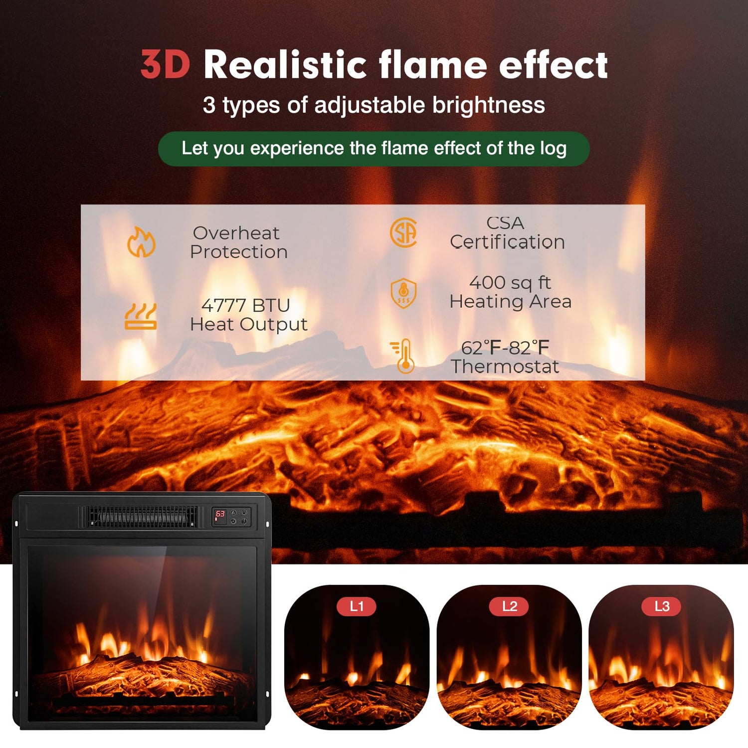 CSA certification + 3 adjustable brightness +Realistic, 3D effect flames