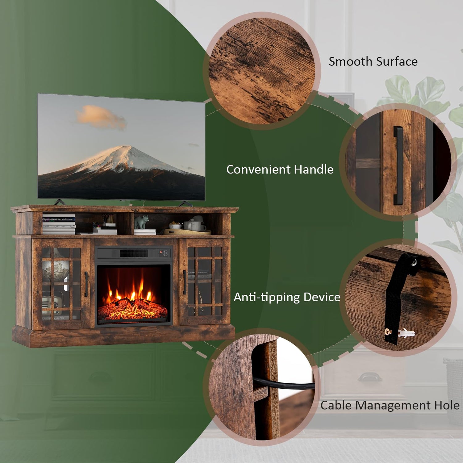SIMOE Fireplace TV Stand for 55 TV, 48 Inch Tv Stand with 18 Inch Electric Fireplace Heater, Mondern Tv Console w/Cabinets & Doors, 6H Timer & Remote Control for Living Room, Home