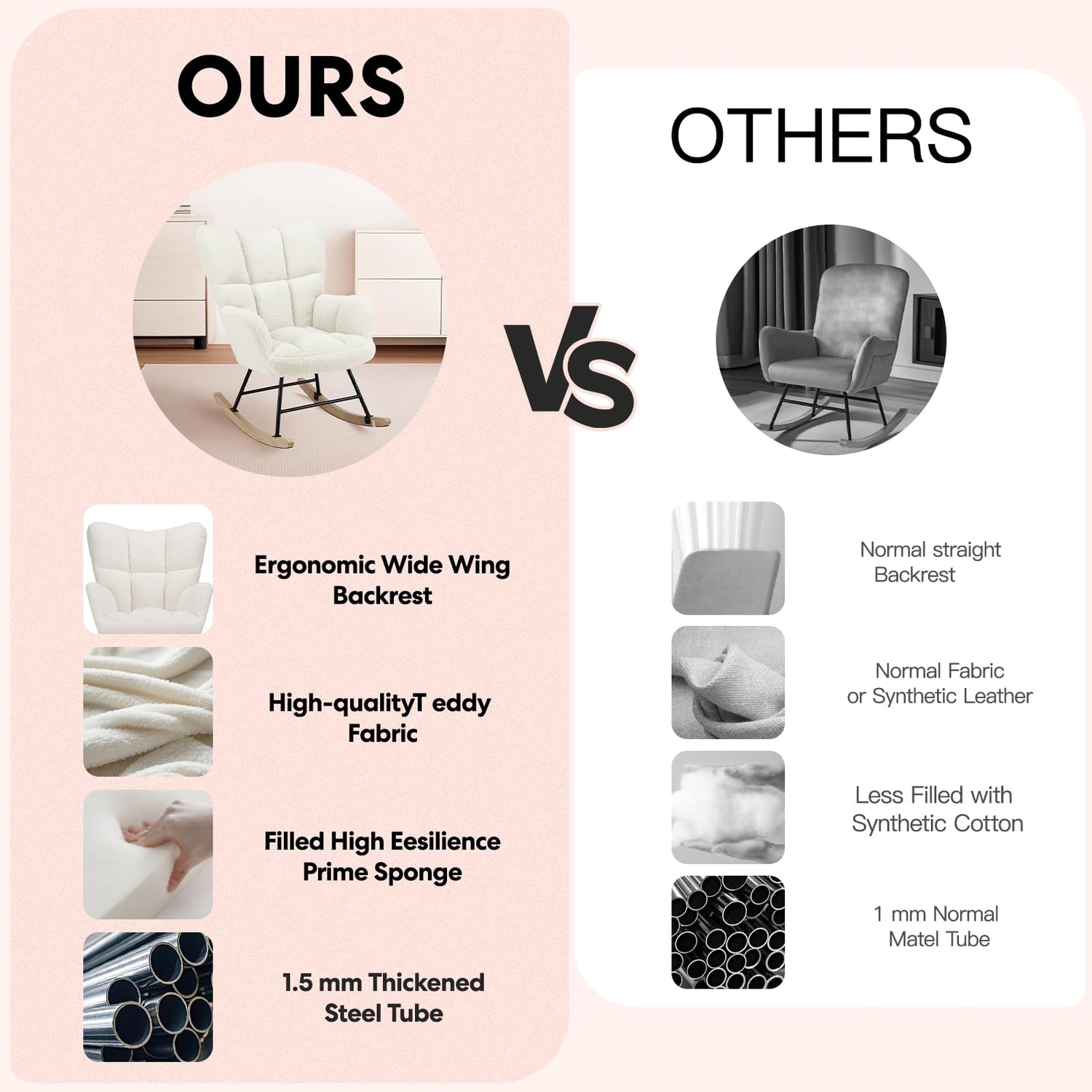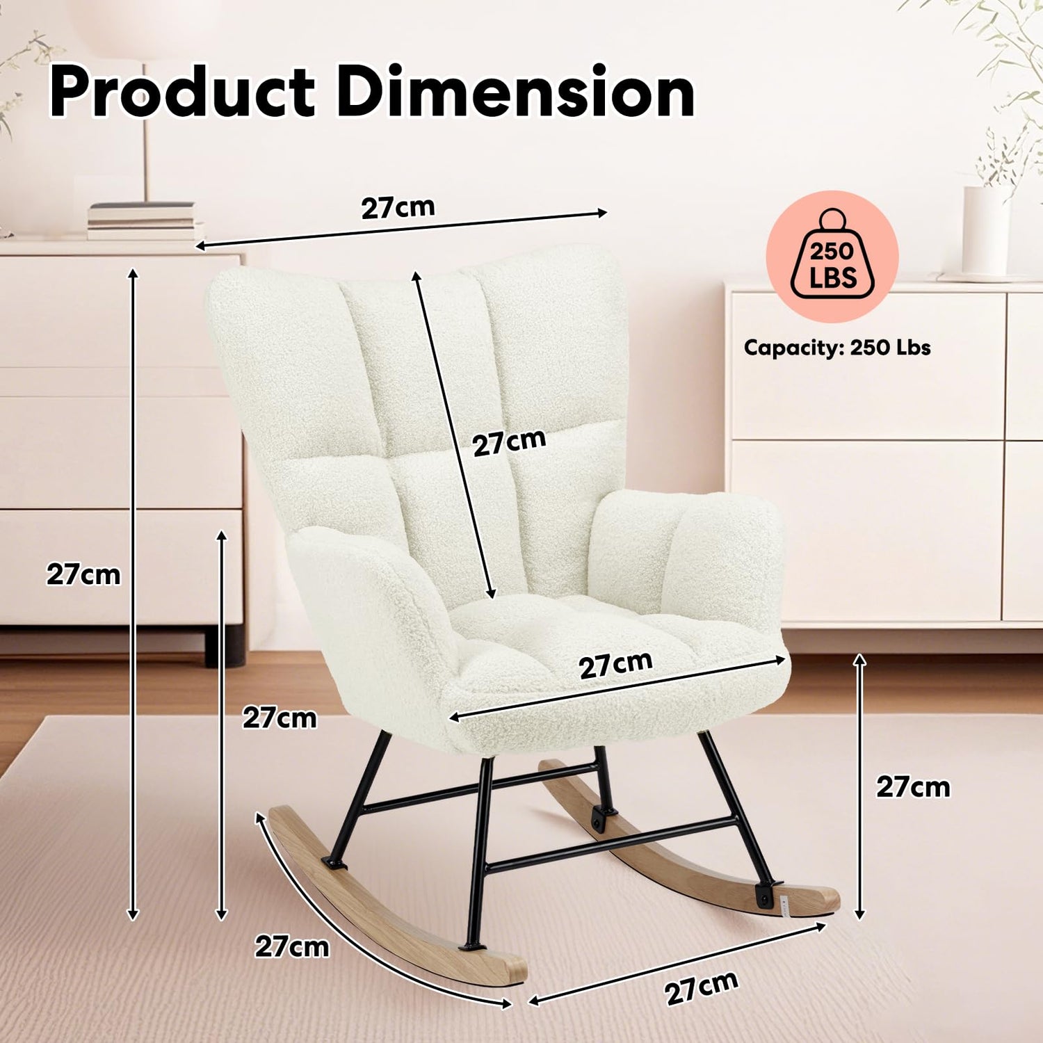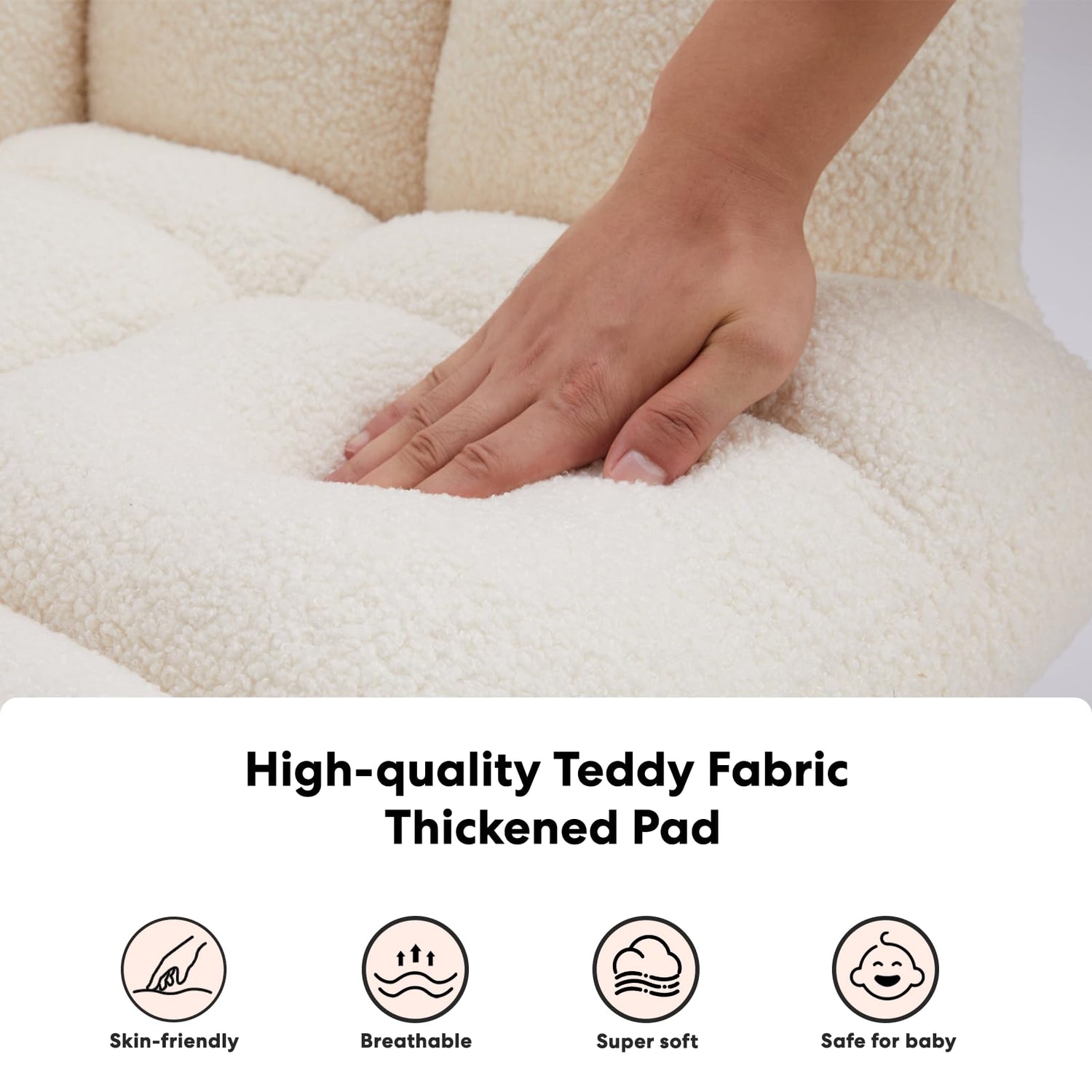 Simple Deluxe Nursery Rocking Chairs, Teddy Upholstered Glider Recliner Rocking Chair with High Backrest Armchair, Comfy Reading Small Accent Side Chair for Nursing, Living Room, Bedroom, White