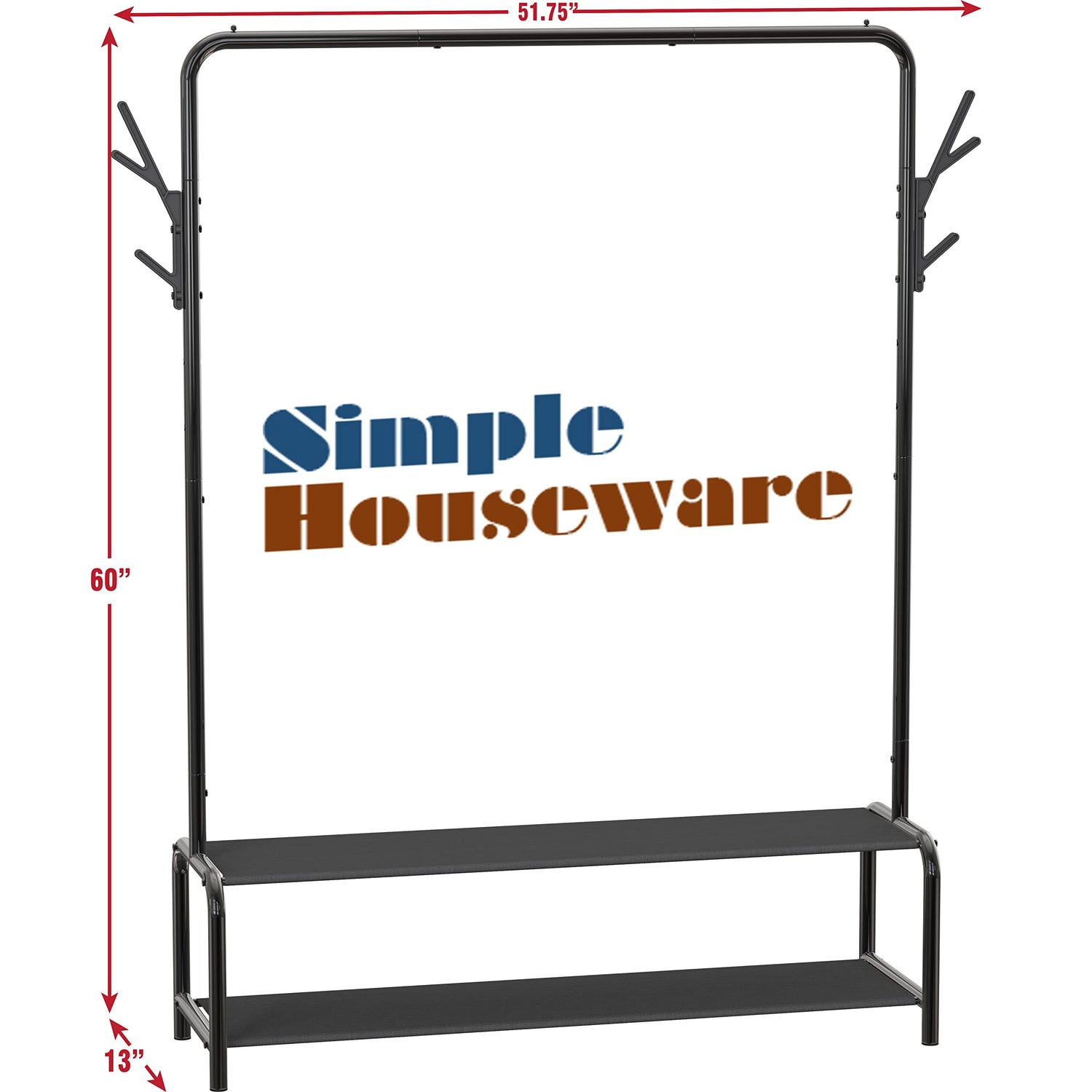 Simple Houseware Garment Rack with Storage Shelves and Coat/Hat Hanging Hooks