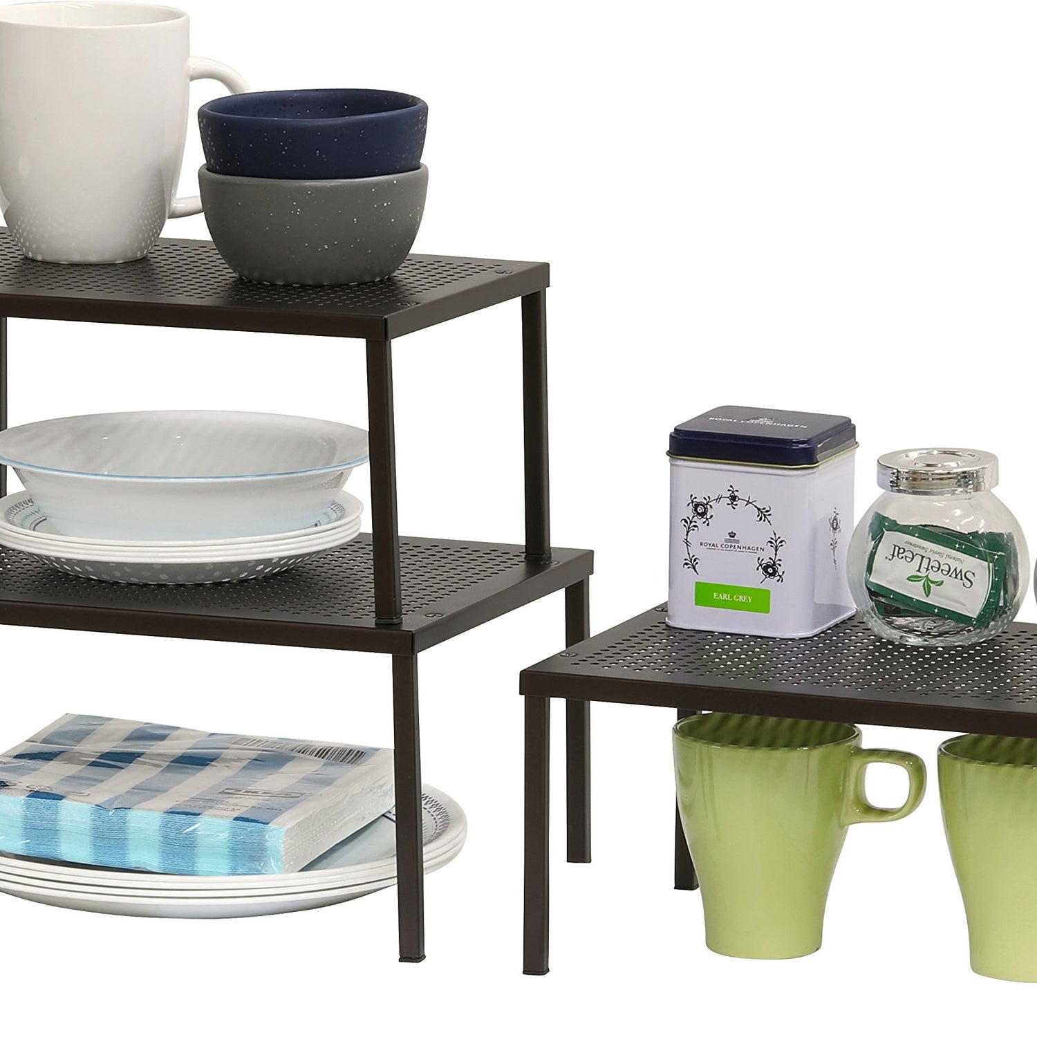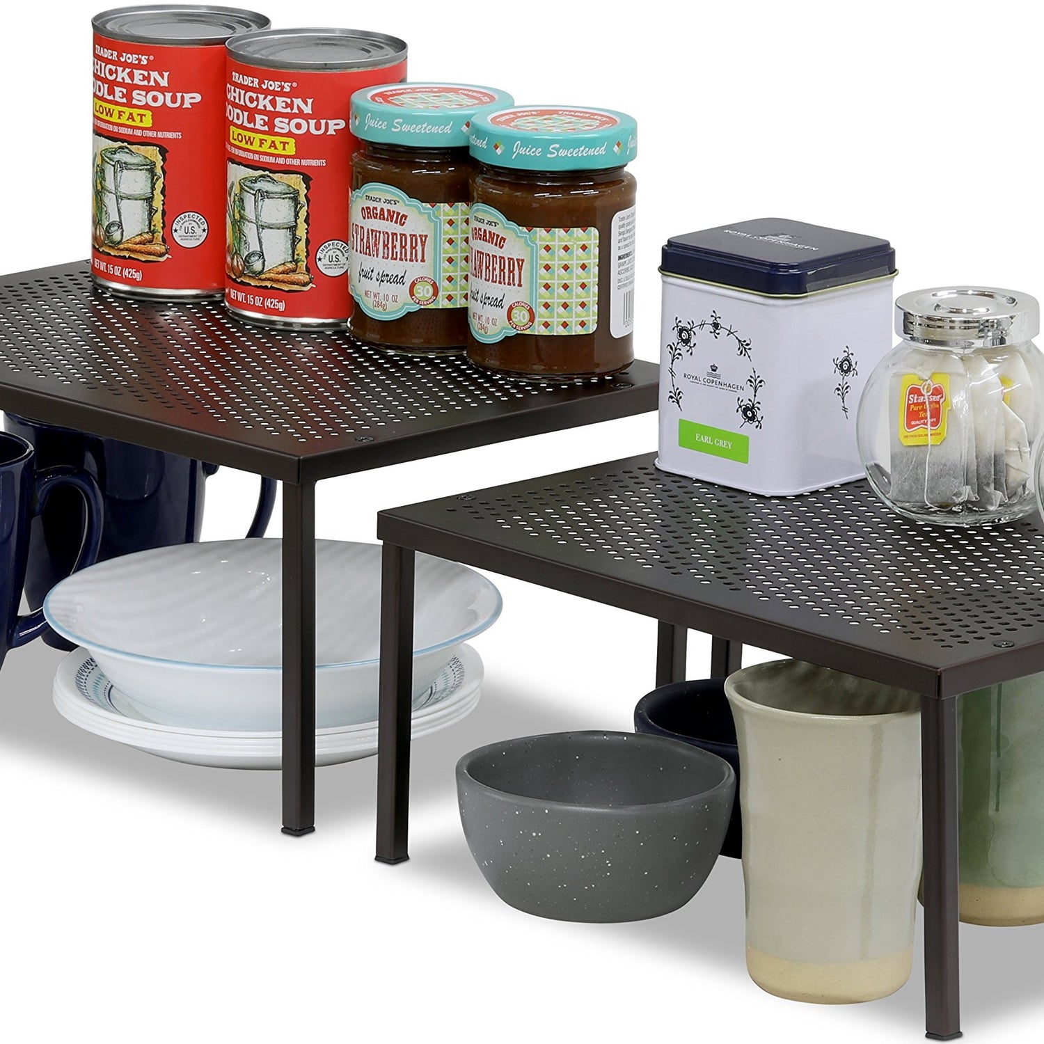Simple Houseware Metal Top Expandable Stackable Kitchen Cabinet and Counter Shelf Organizer, Bronze