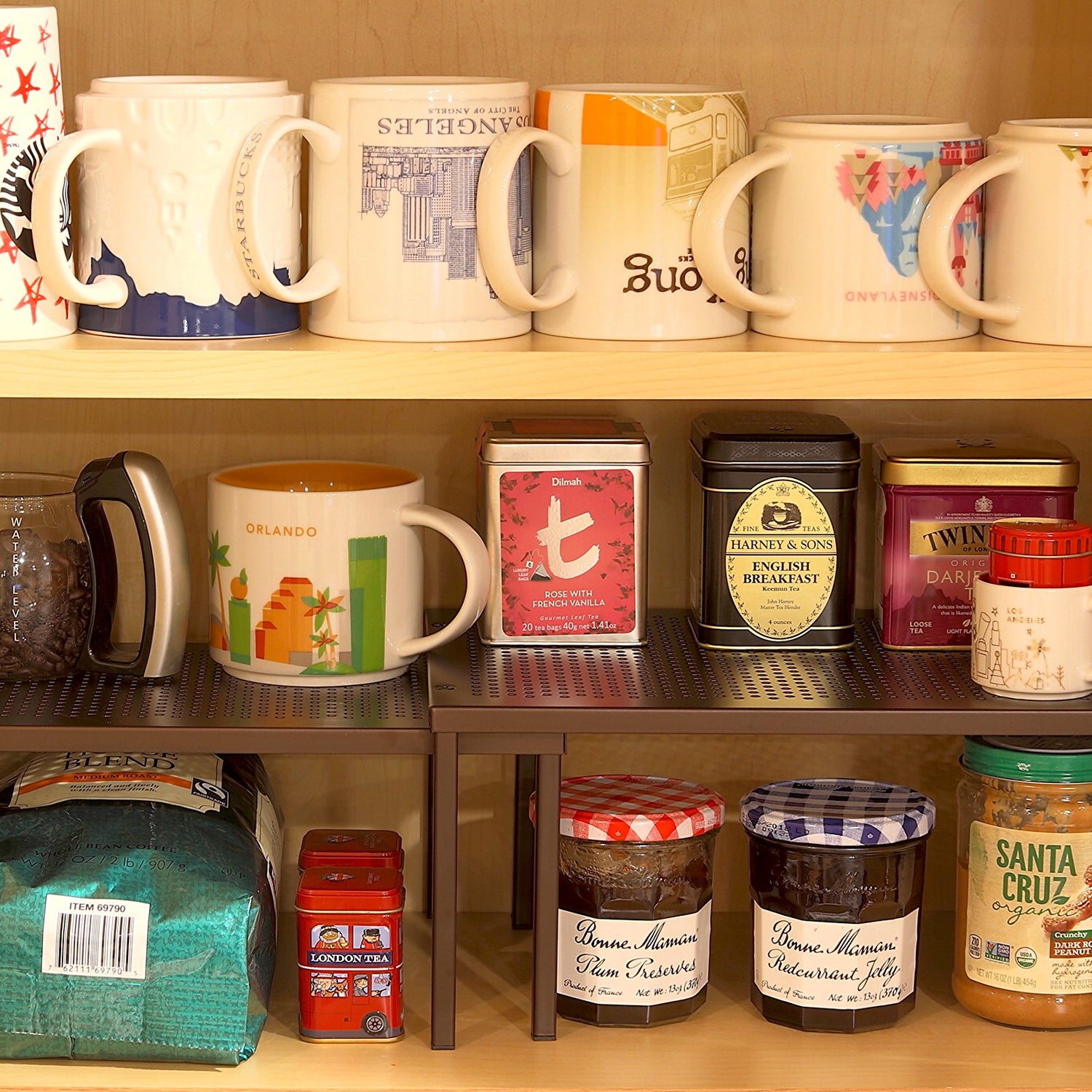 - Great for organizing plates, cups, bottles, can in your cabinet, counter top or even refregiator.