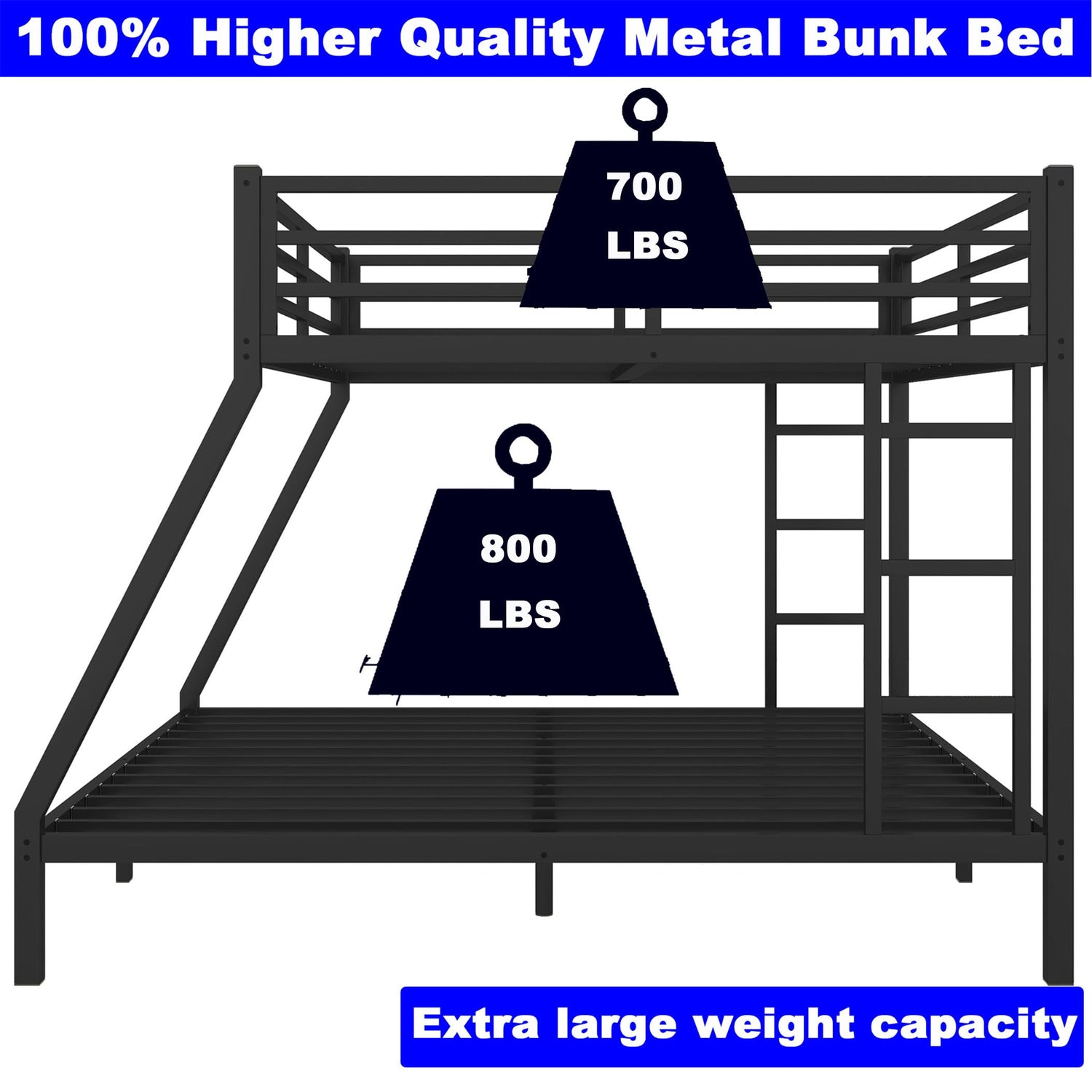 - Higher quality steel bunk bed: The bunk bed frame is made of stronger steel with ultimate strength. Extremely stable and durable. refinement finishes. It is extremely scratch resistant and less likely to rust. Modern and safe design with 4 sturdy poster legs and Our experiments show that the maximum weight capacity of the upper bed is 700lbs, and the maximum weight capacity of the lower bed is 800lbs.