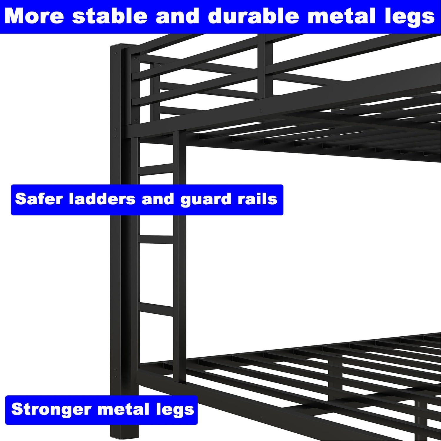 4.. Builtin ladders and 13.6inch Heighten Full Length GuardRail. Classic metal frame and Highstrength metal pipe perfectly combined, fully demonstrate the modern industrial style. the bunk beds comes with 4-step ladders, make it easier and safer to get on and off the bed.