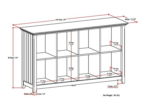 SIMPLIHOME Acadian SOLID WOOD 57 inch Wide Rustic 8 Cube Storage Sofa Table in Brunette Brown with Storage, 8 Shelves, for the Living Room Entryway and Bedroom