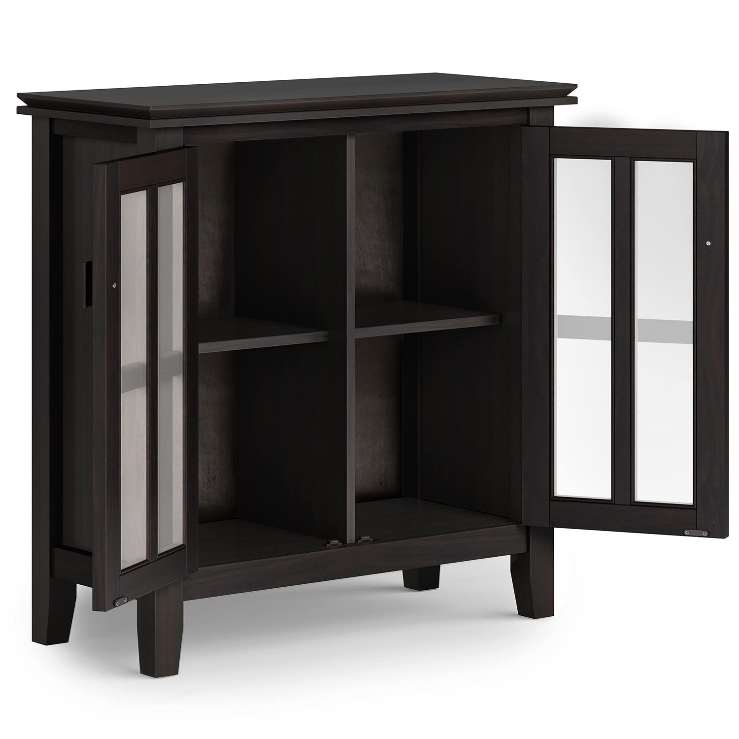 If you want to solve your clutter and mess problem, look no further. We designed the sleek and compact Artisan Low Storage Cabinet as the answer to your storage needs. Two tempered glass doors open to two adjustable shelves allowing you to reconfigure the layout to suit your needs. Display your fine china or decorative accents on dedicated display space for a clean, distinctive look.