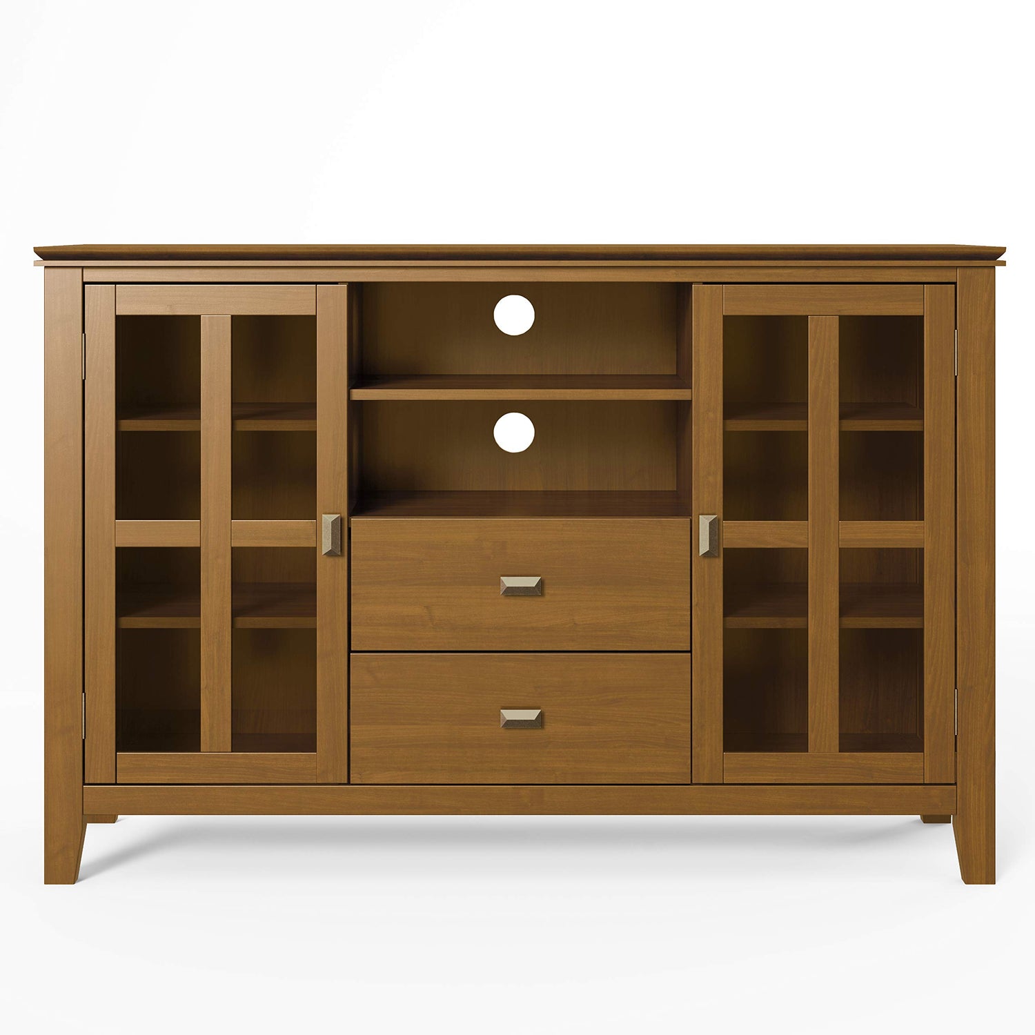 SIMPLIHOME Artisan SOLID WOOD Universal TV Media Stand, 53 inch Wide, Contemporary, Living Room Entertainment Center, Storage Shelves and Cabinets, for Flat Screen TVs up to 60 inches in Honey Brown