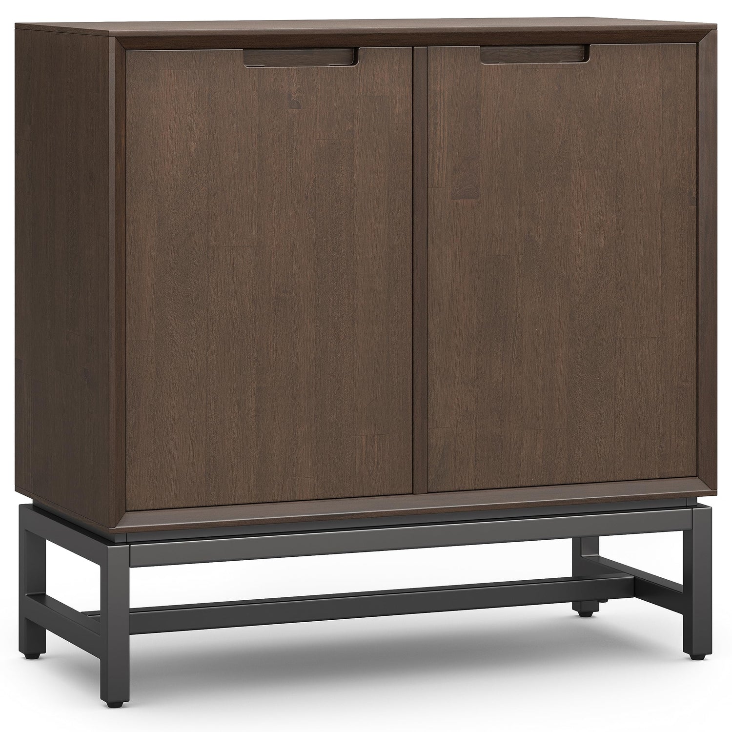 SIMPLIHOME Banting SOLID HARDWOOD Wide Modern Industrial Low Storage Cabinet for The Living, Entryway and Family Room, 32 inch, Walnut Brown