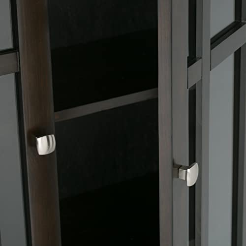 Clutter and mess can seem like an unsolvable problem. It is for this reason we designed the Bedford Medium Storage Cabinet. Two tempered glass doors open to four adjustable shelves allowing you to reconfigure the layout to suit your needs. Display your fine china, decorative accents or even movies on dedicated display space for a clean, distinctive look.; Efforts are made to reproduce accurate colors, variations in color may occur due to computer monitor and photography; At Simpli Home we believe in creating excellent, high quality products made from the finest materials at an affordable price. Every one of our products come with a 1-year warranty and easy returns if you are not satisfied.